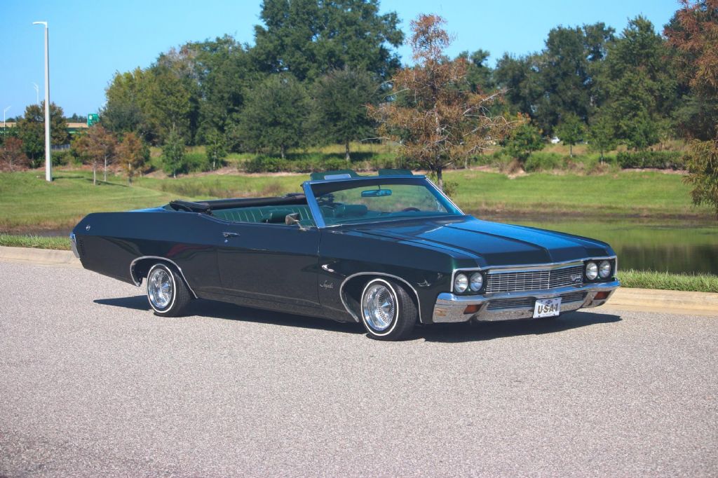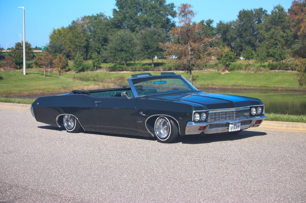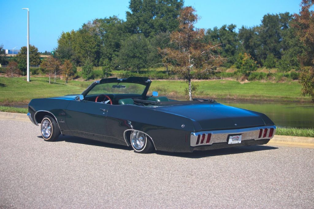 1970 Chevrolet Impala Convertible Lowrider, New 350 V8 Crate Engine, Rebuilt Turbo 350 Automatic Transmission, 13 x 7 Wire Wheels with 155-80-13 White Wall Tires, Full Air Ride System that works great and fast, Full under glow lighting all controlled by an app, Rock Lights, Pioneer Head Unit, Custom X-Pipe Exhaust, Great color combination of Green Exterior, Green Bench Seat Interior, New Green Power Convertible Top all 3 in excellent condition. This car runs and drives excellent and has recently driven a long ride on a hot Florida day with no issues. Take to shows, drive anywhere or change the rims and change the style, the choice is yours! This car couldn't be built for anywhere near the asking price. Turnkey custom car you can drive and enjoy anywhere! While we do our best to provide the highest quality muscle cars with an honest and reliable description and realize the importance of transparency when selling vehicles. That being said, we have not built, modified, changed or personally owned this vehicle. Whether this vehicle is consigned or owned by Past & Present Motor Cars we do not know the vehicles complete history since new. We want to be clear and try to answer any questions our customers might have prior to purchasing. Additionally, we not only welcome but we encourage 3rd party independent inspections. Please inquire prior to purchase to make sure the advertised vehicle has not already been sold. We list our vehicles on multiple websites and a vehicle can sell at any time. If a customer chooses to purchase sight unseen (many of our customers choose this option) the customer accepts the vehicle AS IS and WHERE IS and understands we cannot address concerns after purchase. For this reason, it's important all concerns are addressed prior to purchase. We make every effort to present accurate and reliable information, but use of this information is voluntary, and should only be deemed reliable after an independent review of its accuracy, completeness, and timeliness. It is the sole responsibility of the customer to verify the existence of options, accessories and the vehicle condition before time of sale. Financing is Available with low rates and Vehicle Shipping is available from our Showroom to your Garage. A Classic Car Warranty is Available for Purchase from a 3rd Party. Please speak to our Sales Associate or Company Representative for more information. Our team is working and available anytime by Phone or Text for your convenience at 407-559-7759. Thank you for your interest!