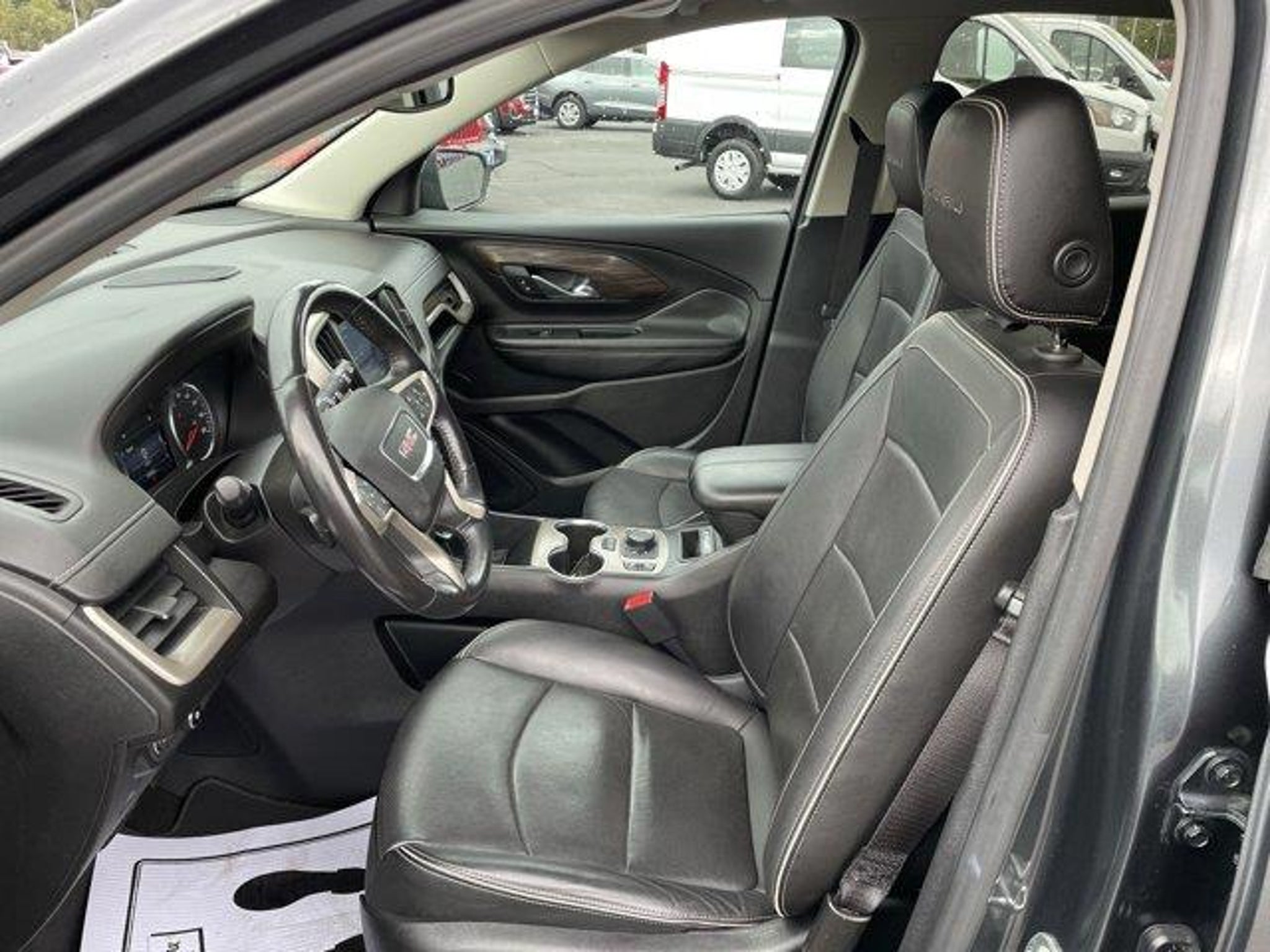 NEW PRICE! 116K MILES! 2 OWNER TRADE IN! MOONROOF! Graphite Gray Metallic 2018 GMC Terrain Denali FWD 9-Speed Automatic 2.0L Turbocharged Advanced Safety Package Apple CarPlay/Android Auto Automatic Parking Assist Birds Eye View Surround Vision Comfort Package Driver Alert Package II Emergency communication system: OnStar Guidance Exterior Parking Camera Rear Following Distance Indicator Forward Collision Alert Fully automatic headlights Heated Rear Outboard Seating Positions IntelliBeam Auto High Beam Headlamp Control Lane Keep Assist w/Lane Departure Warning Low Speed Forward Automatic Braking Perforated Leather-Appointed Seat Trim w/Denali Logo Power Liftgate Equipment Group 5SA Premium 7-Speaker Bose Sound System w/Amplifier Security system Skyscape Power Sunroof w/Power Sunscreen Speed control Ventilated Driver Seat Ventilated Front Passenger Seat Wheels: 19 x 7.5 Ultra-Bright Machined Aluminum Wireless Charging For Devices. Recent Arrival! 22/28 City/Highway MPG Call or stop in for your personal test drive today!