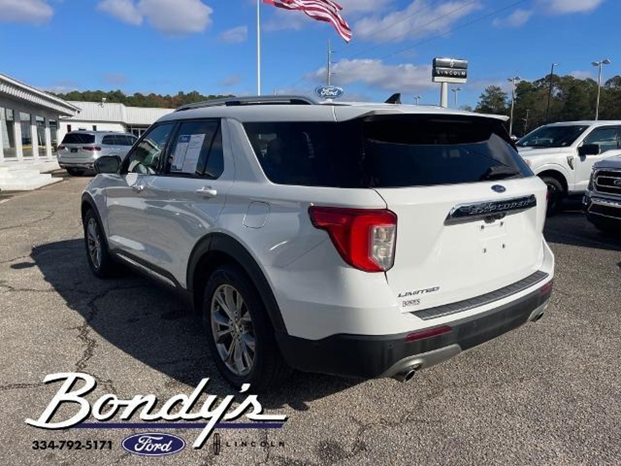 Clean CARFAX. 2022 Ford Explorer Limited 12 Speakers, 1st Row Heated Seats, 20 Premium Painted Aluminum Wheels, 2nd Row Heated Seat Controls Credit, 3.58 Non-Limited-Slip Rear Axle Ratio, 3rd row seats: bench, 4-Wheel Disc Brakes, ABS brakes, Air Conditioning, Alloy wheels, AM/FM radio: SiriusXM, Auto High-beam Headlights, Auto Start-Stop Removal, Auto-dimming Rear-View mirror, Automatic temperature control, Brake assist, Bumpers: body-color, Compass, Delay-off headlights, Driver door bin, Driver vanity mirror, Dual front impact airbags, Dual front side impact airbags, Electronic Stability Control, Emergency communication system: SYNC 3 911 Assist, Equipment Group 300A, Exterior Parking Camera Rear, FordPass Connect, Four wheel independent suspension, Front anti-roll bar, Front Bucket Seats, Front Center Armrest, Front dual zone A/C, Front fog lights, Front License Plate Bracket, Front reading lights, Fully automatic headlights, Garage door transmitter, Heated door mirrors, Heated front seats, Heated rear seats, Heated steering wheel, Illuminated entry, Knee airbag, Leather Heated/Ventilated Captain's Chairs, Leather steering wheel, Low tire pressure warning, Navigation System, Occupant sensing airbag, Outside temperature display, Overhead airbag, Overhead console, Panic alarm, Passenger door bin, Passenger vanity mirror, Power door mirrors, Power driver seat, Power Liftgate, Power passenger seat, Power steering, Power windows, Radio data system, Radio: B&O Sound System by Bang & Olufsen, Rain sensing wipers, Rear air conditioning, Rear anti-roll bar, Rear Auxiliary Controls Credit, Rear reading lights, Rear window defroster, Rear window wiper, Remote keyless entry, Roof rack: rails only, Security system, Speed control, Speed-sensing steering, Speed-Sensitive Wipers, Split folding rear seat, Spoiler, Steering wheel mounted audio controls, SYNC 3 Communications & Entertainment System, SYNC 3/Apple CarPlay/Android Auto, Tachometer, Telescoping steering wheel, Tilt steering wheel, Traction control, Trip computer, Variably intermittent wipers, Ventilated front seats, Voice-Activated Touchscreen Navigation System. Oxford White RWD 2.3L EcoBoost I-4 10-Speed Automatic THIS VEHICLE IS LOCATED AT BONDY'S FORD LINCOLN AT 3615 ROSS CLARK CIRCLE DOTHAN, AL 36303. PLEASE CALL US AT 800-239-5171 TO ASK US ANY QUESTIONS! MON-FRI SALES IS HERE FROM 8:30 TO 7:00 AND SAT 8:30 TO 6:00. WE ARE CLOSED ON SUNDAYS. Call Toll Free 800-239-5171 or 334-792-5171.