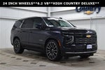 2025 Chevrolet Tahoe High Country Dark Ash Metallic 4WD EcoTec3 6.2L V8 10-Speed Automatic with Overdrive 4WD, Jet Black Leather, Dual-Pane Power Panoramic Sunroof, Heated Driver and Front Passenger Seats, Illuminated entry, Remote keyless entry, Tilt steering wheel, Ventilated front seats. CHECK US OUT!!!...BIG CITY SELECTION & SAVINGS WITH SMALL TOWN HOSPITALITY...