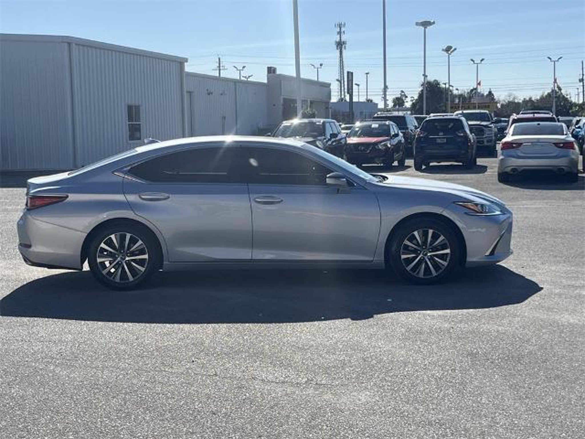 Alloy wheels, Exterior Parking Camera Rear, Power moonroof, 10 Speakers, 10-Way Power Adjustable Front Seats, 4-Wheel Disc Brakes, ABS brakes, Air Conditioning, AM/FM radio: SiriusXM, Apple CarPlay/Android Auto, Auto High-beam Headlights, Auto-dimming door mirrors, Auto-dimming Rear-View mirror, Automatic temperature control, Brake assist, Bumpers: body-color, CD player, Compass, Delay-off headlights, Driver door bin, Driver vanity mirror, Dual front impact airbags, Dual front side impact airbags, Electronic Stability Control, Emergency communication system, Four wheel independent suspension, Front anti-roll bar, Front Bucket Seats, Front Center Armrest, Front dual zone A/C, Front reading lights, Fully automatic headlights, Garage door transmitter: HomeLink, Illuminated entry, Knee airbag, Leather Shift Knob, Leather steering wheel, Low tire pressure warning, Occupant sensing airbag, Outside temperature display, Overhead airbag, Overhead console, Panic alarm, Passenger door bin, Passenger vanity mirror, Perforated NuLuxe Seat Trim, Power door mirrors, Power driver seat, Power passenger seat, Power steering, Power windows, Radio data system, Radio: Multimedia System w/8 Color Display, Rear anti-roll bar, Rear reading lights, Rear seat center armrest, Rear side impact airbag, Rear window defroster, Remote keyless entry, Security system, Speed control, Speed-sensing steering, Steering wheel mounted audio controls, Tachometer, Telescoping steering wheel, Tilt steering wheel, Traction control, Trip computer, Turn signal indicator mirrors, Variably intermittent wipers, Wheels: 17 x 7.5J Split 10-Spoke Aluminum Alloy, Alloy wheels, Exterior Parking Camera Rear, Power moonroof. Silver 2021 Lexus ES 350 FWD 8-Speed Automatic 3.5L V6 DOHC 24V