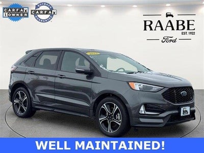 **Free CarFax provided on our website!** 2019 Ford Edge AWD ST 8-Speed Automatic Magnetic Metallic 4D Sport Utility 2.7L V6 EcoBoost SYNC Bluetooth Technology, SUNROOF, ALLOY WHEELS, TRAILER TOW, CARFAX ONE OWNER, LEATHER HEATED FRONT SEATS, POWER LIFTGATE, TWO SETS OF KEYS, FULL TANK OF GAS UPON DELIVERY, Edge ST, 4D Sport Utility, 2.7L V6 EcoBoost, AWD, 110V/150W AC Power Outlet, Convenience Package, Equipment Group 400A, Foot-Activated Hands-Free Liftgate, Perimeter Alarm, Remote Start System, Universal Garage Door Opener (UGDO), Wireless Charging Pad. Odometer is 10180 miles below market average! 19/26 City/Highway MPG Raabe Ford Lincoln has an A Rating with the Better Business Bureau. Feel free to compare us to other dealers in the area before your make your purchasing decision. We assist in finding the right vehicle that fits within your wants, needs and budget. We offer several options to ensure Your Vehicle Purchase and Give You Peace of Mind! We've been selling and servicing the residents of Allen, Putnam, Van Wert Counties and Lima, Delphos, and Ft. Wayne for 105 years.