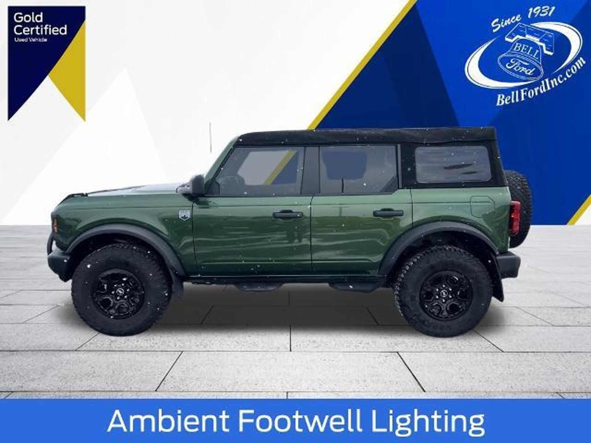 This Bronco has numerous upgrades, including: Rim Rings, Soft Top Lift Assist, Bull Bar, Light Bar, Running Boards/Steps, Oh Shit Grips, Phone Holder, Mudflaps, Cargo Liner/Back Seat Protector, 2x6 Pod Speakers (replacement for 4), 8 subwoofer, Amplifier, Hitch, Hitch Wiring, Tow Hook, Cargo Cover, Seat Covers (New), Window Tint, Bug Shield, Black Bronco Decal, Bronco Lettering Blackout, Door Storage, Wireless Keypad. $2826 below J.D. POWER Guide Retail, Eruption Green Exterior and Vinyl Gray/Black Interior, Big Bend Sasquatch Package, Remote Start, Heated Seats, Satellite Radio, iPod/MP3 Input, Voice Activated Navigation, Automatic Transmission, Carfax 1-Owner AND MORE! THE IDEAL TIME TO BUY THIS BRONCO This used BRONCO is priced $2826 below J.D. POWER Guide. KEY FEATURES ON THIS BRONCO Heated Front Seats, 4WD, Satellite Radio, Navigation, Green Exterior and Vinyl Gray/Black Interior, 2.3L Ecoboost Engine, One-Owner! WHO WE ARE Welcome to Bell Ford! Located in Arlington, Wisconsin, Bell Ford is proud to be a Family Owned Ford Dealership since 1931. From the minute you walk into our showroom, you'll know our commitment to Customer Service is second to none. Our goal is to make your experience with Bell Ford a good one for the life of your vehicle. Whether you need to Purchase, Finance, or Service a New, Certified or Pre-Owned Ford, or any other make or model, you've come to the right place. We monitor and compare our prices to the market daily and adjust accordingly. Please confirm the availability of the vehicle and accuracy of the included equipment by calling us prior to purchase. Ford Gold Certified Details: * 22,000 FordPass Rewards Points to use toward first two maintenance visits * Roadside Assistance * Vehicle History * Transferable Warranty * Powertrain Limited Warranty: 84 Month/100,000 Mile (whichever comes first) from original in-service date * 172 Point Inspection * Warranty Deductible: $100 * Limited Warranty: 12 Month/12,000 Mile (whichever comes first) after new car warranty expires or from certified purchase date Please ask for Joe, Logan, Lindsey or Mason. We pride ourselves on a non-pressure sales environment. Most vehicles come with a Complimentary 6 Month/6,000 Mile Bell Ford Limited WARRANTY! Many CERTIFIED vehicles to choose from. View our complete inventory online at www.BellFordInc.com A quality vehicle at a quality price is what we strive to achieve. Hours: 8:30a-6p Mon-Fri, 8:30a-3:00p Saturday. Vehicle History Report available upon request. Servin