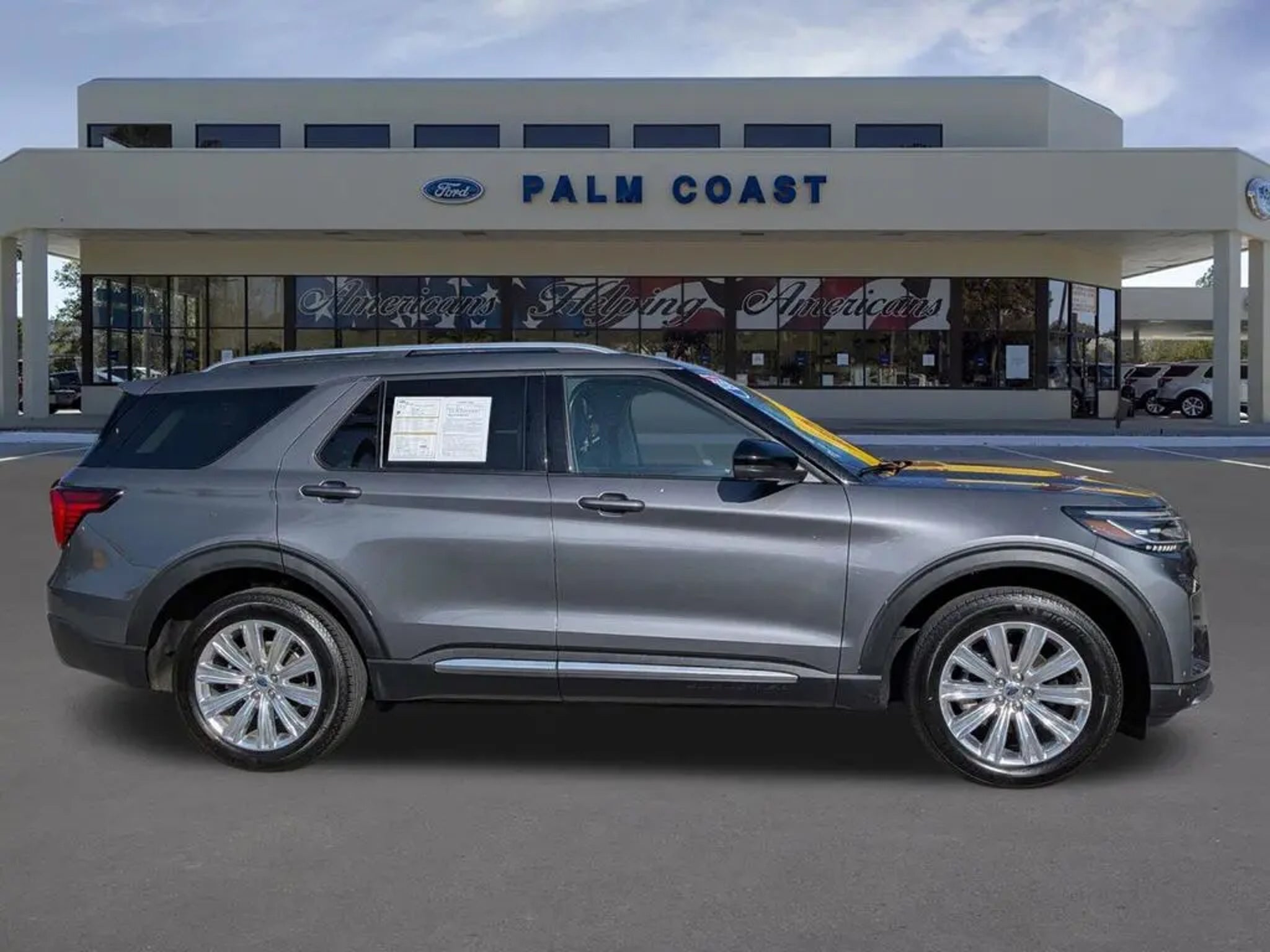 Certified. 2025 Ford Explorer Platinum 4WD 2.3L EcoBoost I-4 10-Speed Automatic Gray Metallic 4WD. CARFAX One-Owner. Ford Gold Certified Details: * Powertrain Limited Warranty: 84 Month/100,000 Mile (whichever comes first) from original in-service date * Vehicle History * Roadside Assistance * and 22,000 FordPass Rewards Points to use toward first two maintenance visits * Limited Warranty: 12 Month/12,000 Mile (whichever comes first) after new car warranty expires or from certified purchase date * Transferable Warranty * Warranty Deductible: $100 * 172 Point Inspection 20/27 City/Highway MPG Equipped with Equipment Group 600A Standard Package, Lux Leather Package (Leather Seating Surfaces Sport Captain Chairs, Platinum Badges on Front Row Seats, Quilting & Stitching on Door Panels, and Quilting & Stitching on Seats), Ford Gold Certified Certified, 4WD, 14 Speakers, 3.58 Non-Limited Slip Rear Axle, 3rd row seats: bench, 4-Wheel Disc Brakes, ABS brakes, ActiveX Trimmed Sport Captain's Chairs, Air Conditioning, Alloy wheels, AM/FM radio: SiriusXM with 360L, Apple CarPlay/Android Auto, Auto High-beam Headlights, Auto-dimming door mirrors, Auto-dimming Rear-View mirror, Automatic temperature control, Brake assist, Bumpers: body-color, Compass, Delay-off headlights, Driver door bin, Driver vanity mirror, Dual front impact airbags, Dual front side impact airbags, Electronic Stability Control, Emergency communication system: 911 Assist, Exterior Parking Camera Rear, Four wheel independent suspension, Front & 2nd Rows Floor Liners w/Carpet Floor Mats, Front anti-roll bar, Front Bucket Seats, Front Center Armrest, Front dual zone A/C, Front fog lights, Front reading lights, Fully automatic headlights, Garage door transmitter, Heated door mirrors, Heated front seats, Heated rear seats, Heated steering wheel, Illuminated entry, Internet access capable: FordPass Connect 5G, Knee airbag, Leather steering wheel, Low tire pressure warning, Memory seat, Navigation System, Occupant sensing airbag, Outside temperature display, Overhead airbag, Overhead console, Panic alarm, Passenger door bin, Passenger vanity mirror, Power door mirrors, Power driver seat, Power Liftgate, Power moonroof, Power passenger seat, Power steering, Power windows, Radio data system, Radio: B&O Sound System by Bang & Olufsen w/HD, Rain sensing wipers, Rear air conditioning, Rear anti-roll bar, Rear reading lights, Rear window defroster, Rear window wiper, Remote keyless entry, Security system, Speed control, Speed-sensing steering, Speed-Sensitive Wipers, Split folding rear seat, Spoiler, Steering wheel mounted audio controls, Tachometer, Telescoping steering wheel, Tilt steering wheel, Traction control, Trip computer, Turn signal indicator mirrors, Variably intermittent wipers, Ventilated front seats, Wheels: 20 10-Spoke Aluminum (DISC), and Wheels: 20 Luster Nickel-Painted Aluminum. Palm Coast Ford, We're Not That Far! Free deliveries within 200 miles. Call us today to experience the difference, .