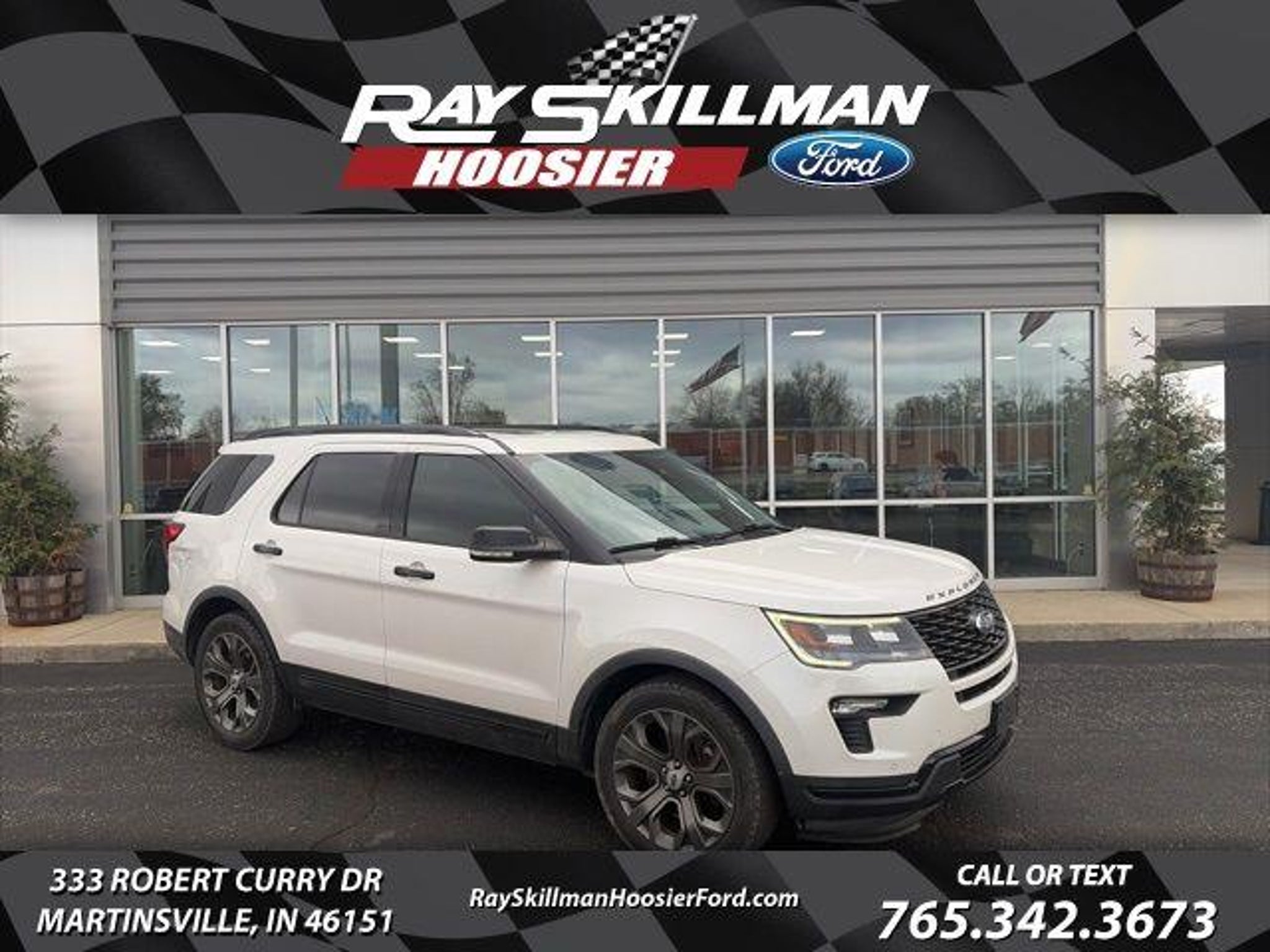 Recent Arrival! White Platinum 2018 Ford Explorer Sport 4WD 6-Speed Automatic with Select-Shift 3.5L V6 4WD, 110V/150W AC Power Outlet, 2nd Row Heated Seats, Adaptive Cruise Control & Fwd Collision Warning, Ambient Lighting, Auto High-Beam Headlights, BLIS Blind Spot Information System, Dual 2nd Row Smart Charging USB, Equipment Group 401A, Ford Safe & Smart Package, Front 180 Degree Camera w/Split View & Washer, Inflatable Rear Safety Belts, Lane-Keeping System, Memory Feature, Navigation System, Perforated Leather Heated/Cooled Bucket Seats, Power Tilt/Telescoping Steering Wheel, Radio: Premium Sound from Sony, Rain-Sensing Wipers (Front Only), Remote Control Front Windows, SYNC 3 Communications & Entertainment System, Universal Garage Door Opener (UGDO). Why Buy From Us: At Ray Skillman Hoosier Ford, we are 110% committed to our customers in Martinsville, Bloomington, Mooresville, and all over the great state of Indiana. We want to ease the unnecessary stress of the car buying process and make it simple and enjoyable for you and your family. Our friendly sales team is here to listen to your individual needs and help to identify the right car for you. With so many New Ford Vehicles and a diverse selection of Pre-Owned Vehicles to choose from, drivers are sure to find exactly what they're looking for at Ray Skillman Hoosier Ford. Awards: * 2018 KBB.com 10 Most Awarded Brands * 2018 KBB.com Brand Image Awards Contact Us: Call or text 765-342-3673 to schedule your test drive today! All offers shown do not include tax, title, or $251.00 doc/compliance fee.