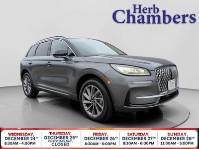 INSPECTION COMPLETED Every Herb Chambers pre-owned vehicle receives a complete multi-point inspection by factory trained technicians who inspect the tires, perform a brake inspection, battery voltage test as well as function test all lights. Additionally, we inspect the cooling system, transmission fluid, differential fluid as well as function test all options accessories. And for all non-Electric Vehicles we also check the Exhaust System and do a complete Oil Filter Change. We then professionally detail the vehicle inside and out. BUY WITH CONFIDENCE Only a Herb Chambers CERTIFIED Pre-Owned vehicle receives a Rigorous Multi-Point Inspection 5-Day 100% Money Back Guarantee / 30-Day, 1,500 Mile Vehicle Exchange and a Portfolio CarFax. Visit www.herbchamberssmartpricing.com and https: //www.herbchambers.com/guarantee-details.htmfor for complete details. OPTION PACKAGES EQUIPMENT GROUP 101A Wheels: 18 Bright Machined Aluminum, Dark tarnish finish, Hands-Free Liftgate, 2 Additional USB Ports in Rear of Center Console, illuminated types C and C, Lincoln Co-Pilot360 Vision 2.0, Front Parking Sensors, Reverse Brake Assist, 360-Degree Camera, sideview mirror security approach lamps, Post-Collision Braking, Rain Sensing Wipers, Power Tilt/Telescoping Steering Column w/Memory, Phone As A Key (PAAK), Frameless Auto Dimming Rearview Mirror, Heated/Ventilated Driver Front Passenger Seats, 60/40 EasyFold Rear Seat w/Power Seatback Release, Windshield Wiper De-Icer, Universal Garage Door Opener, Heated Sideview Mirrors, auto dimming, auto fold, black cap, memory, Lincoln logo welcome mat and turn signal indicators, Heated Steering Wheel, Wireless Charging Pad, PANORAMIC VISTA ROOF W/POWER SHADE Black Roof Rack Side Rails, WHEELS: 19 BRIGHT MACHINED ALUMINUM Dark tarnish premium paint, Tires: 225/55R19 99V All-Season BSW, ASHER GRAY METALLIC CLEARCOAT, 17 MINI STEEL SPARE WHEEL T155/70D17 Spare Tire, ALL-WEATHER FLOOR LINERS W/FR RR CARPET FLOOR MATS, ENGINE: TURBOCHARGED 2.0L I-4: auto start-stop technology (STD), EBONY, MICRO-PERF LINCOLN SOFT TOUCH CAPTAINS CHAIRS: micro-perforated inserts. KEY FEATURES INCLUDE All Wheel Drive, Navigation, Remote Engine Start, Onboard Communications System, Power Liftgate, Satellite Radio, iPod/MP3 Input, Dual Zone A/C, Blind Spot Monitor, Lane Keeping Assist, Apple CarPlay?, Smart Device Integration, WiFi Hotspot, Brake Actuated Limited Slip Differential Rear Spoiler, Privacy Glass, Child Safety Locks, Steering Wheel Controls, Electronic Stability Control. 2025 Lincoln Corsair with