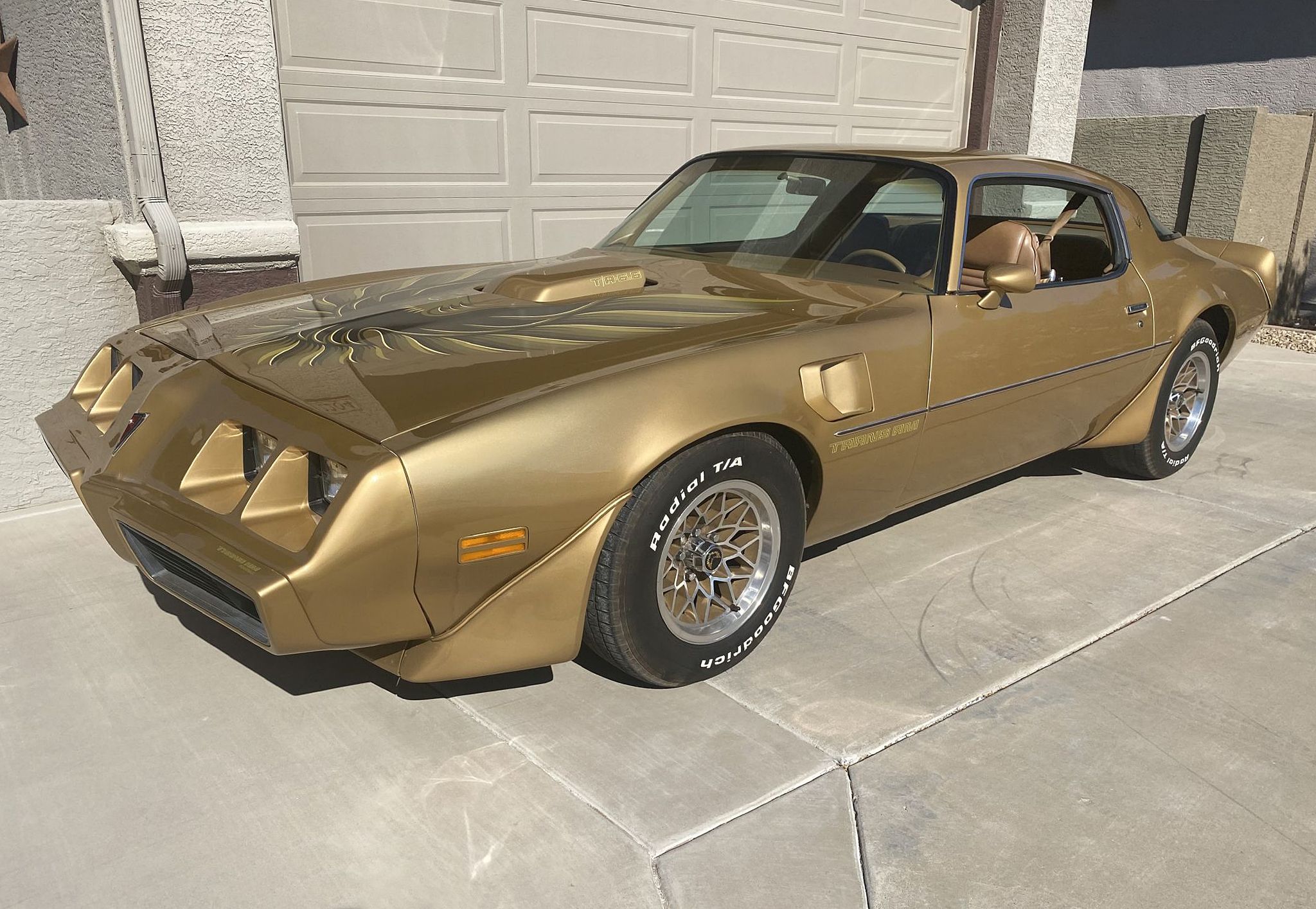 ![]() Click on the image for a larger picture. 1979 PONTIAC TRANS AM COUPE 400, 4 speed, 44k miles, original color repaint in excellent condition. No chips, dings or scratches. Power steering, power brakes and air conditioning. All gages and air conditioning work. Drives excellent. PHS documentation. One of only 2,485 1979 W72 400 4 speed non T-top cars, last year for the 6.6L (400ci), 4 speed manual Trans Am's, numbers matching engine, runs like brand new, Richmond Super T10 4 speed with new clutch, rare non T-top car, seller states 44,600 original miles, WS6 special performance package, PHS documentation and original build sheet, solid southwestern car, gorgeous Solar Gold paint, beautiful Camel Deluxe interior, factory Honeycomb wheels, rebuilt suspension, power 4 wheel disc brakes, factory A/C converted to 134A and blows cold, factory 3.23 limited slip rear end. Runs and drives like a brand new car.