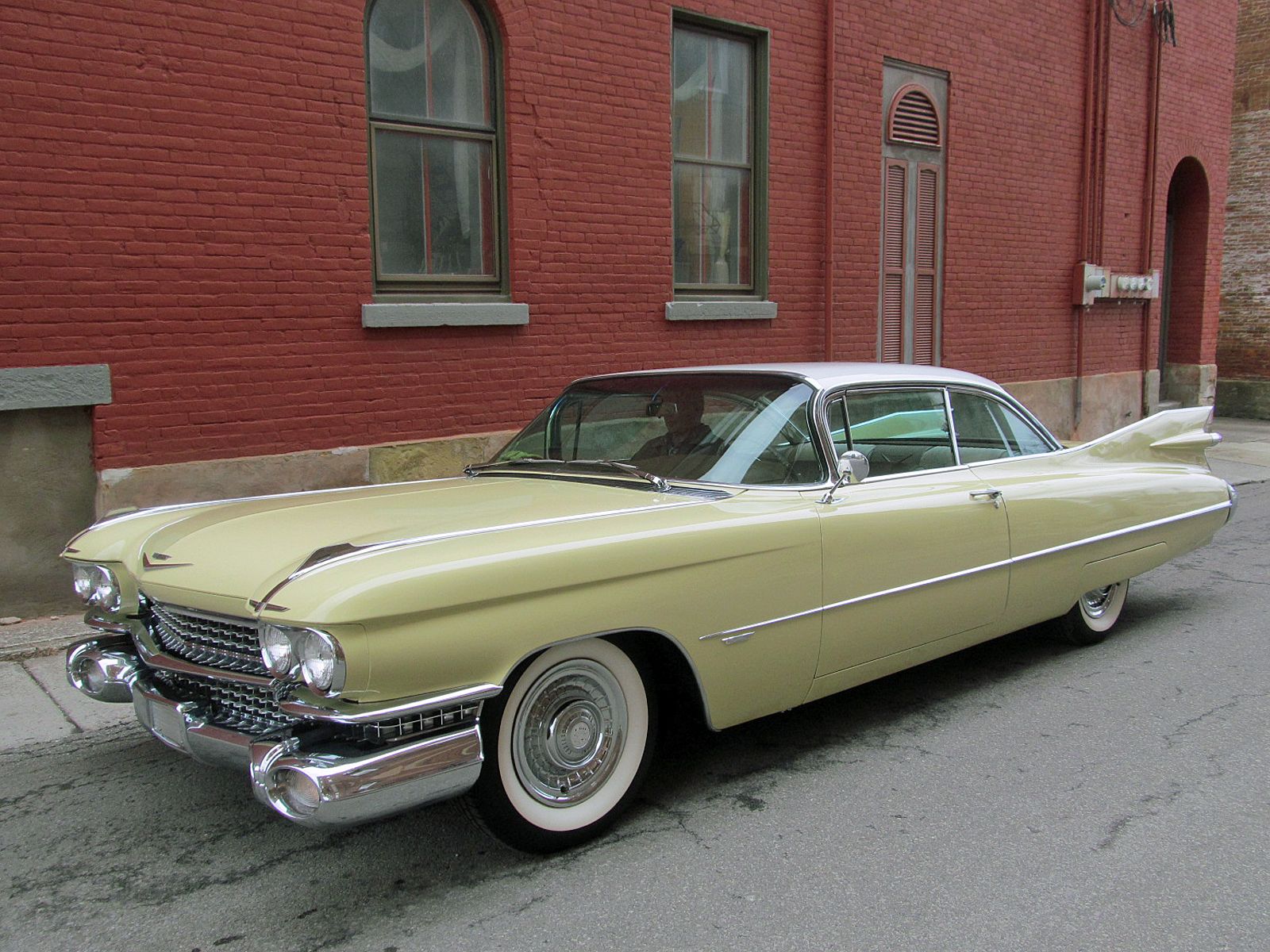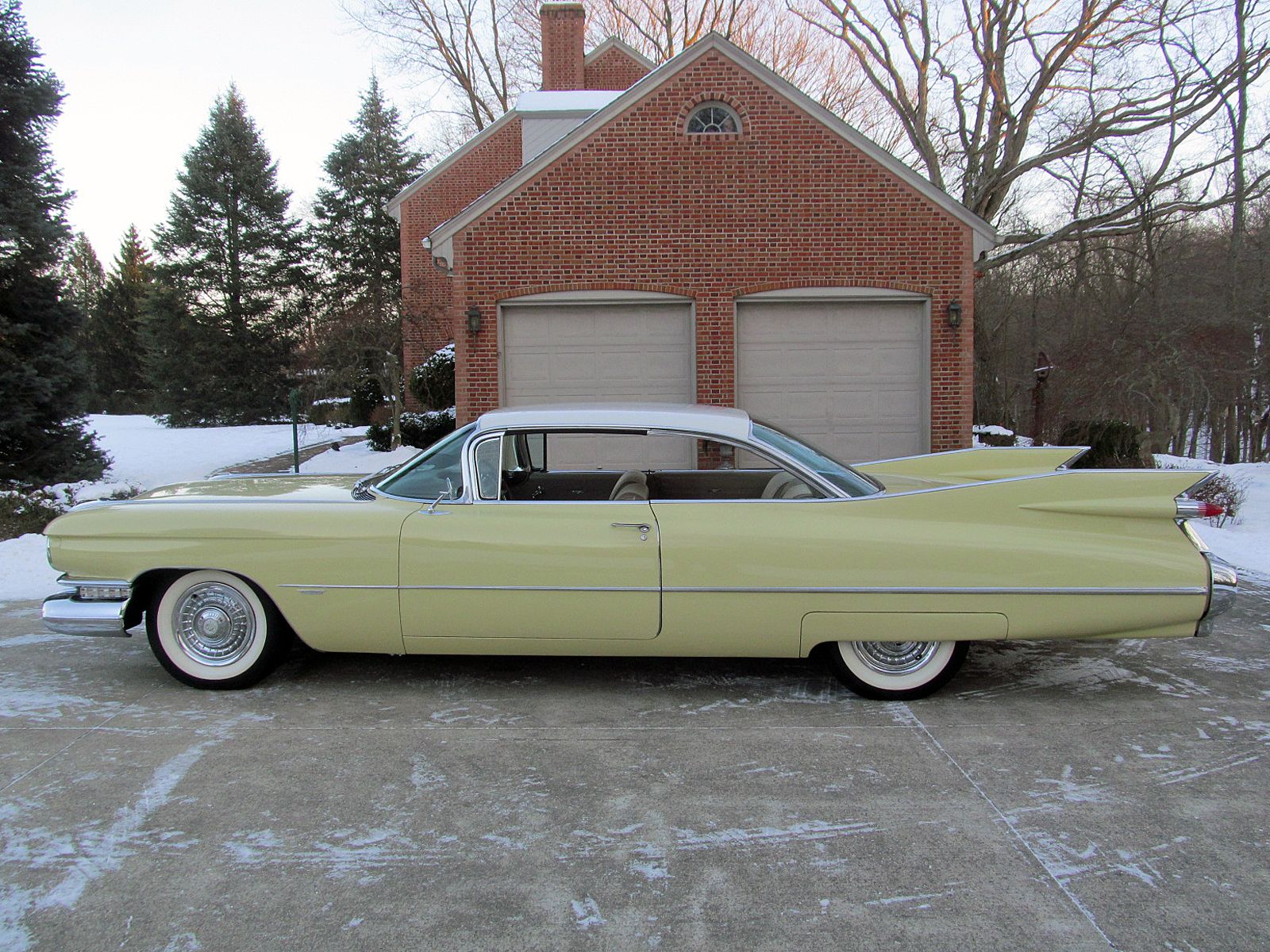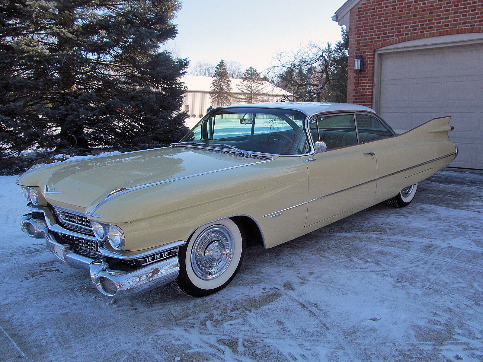 1959 Cadillac Series 62 Coupe. Call Pete or Andy 419-668-1884. The most iconic tailfins ever created! The zenith of jet-age style! Excellent. Style Number 6237. Finished in Color Code Correct number 40 Gotham Gold with Color Code Correct number 12 Dover White roof. The interior is finished in Trim Code Correct number 35 Fawn Mojave Cloth and Fawn Coated Fabric. Numbers Matching Engine, Chassis and Service Tag. Powered by Cadillac’s 390 Cubic Inch V-8 which was rated at 325 horsepower. Dual Exhaust. Hydra-Matic Automatic Transmission. This Cadilac is equipped with lots of great features. Power Windows. Power Steering. Power Brakes. Power Antenna. AM Radio. Clock. Heater / Defroster. Day / Nite Rearview Mirror. Remote Driver Mirror. Rear seat arm rest. E-Z-Eye Tinted Glass. Radial Wide White Wall tires. The Doors even lock and unlock with the key! Ready to Drive, Show and Enjoy. Call Pete or Andy 419-668-1884 BE SURE TO WATCH THE VIDEO!