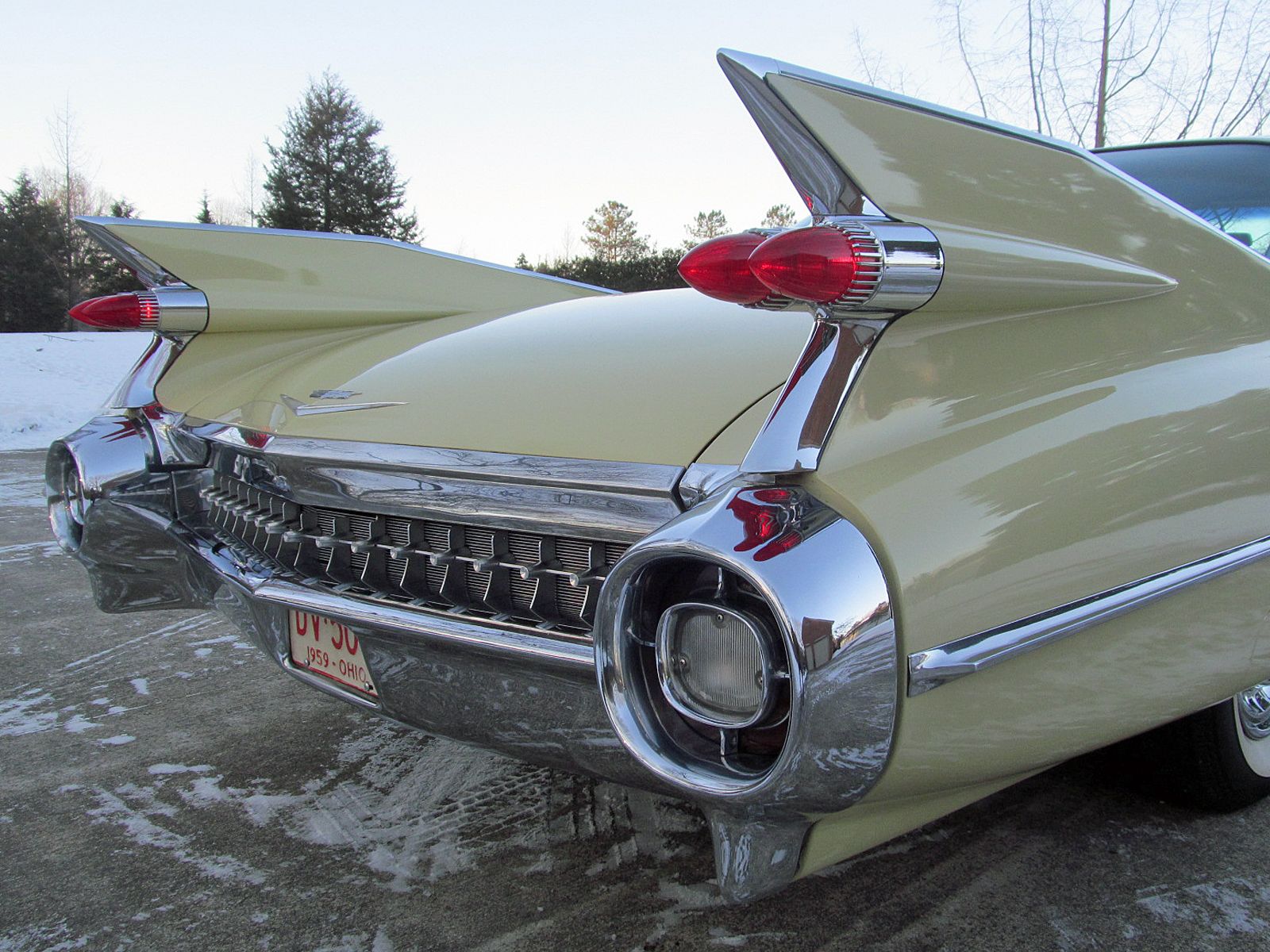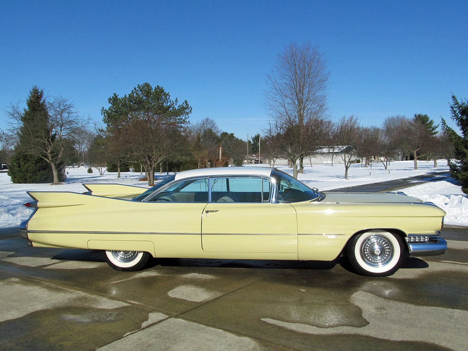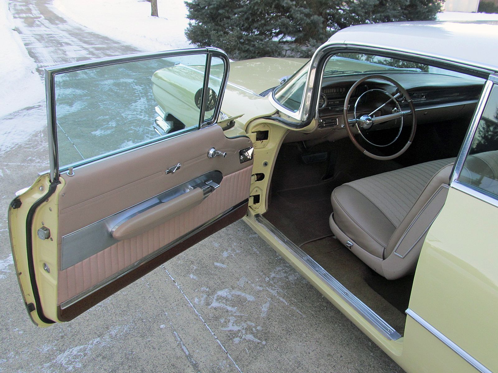 1959 Cadillac Series 62 Coupe. Call Pete or Andy 419-668-1884. The most iconic tailfins ever created! The zenith of jet-age style! Excellent. Style Number 6237. Finished in Color Code Correct number 40 Gotham Gold with Color Code Correct number 12 Dover White roof. The interior is finished in Trim Code Correct number 35 Fawn Mojave Cloth and Fawn Coated Fabric. Numbers Matching Engine, Chassis and Service Tag. Powered by Cadillac’s 390 Cubic Inch V-8 which was rated at 325 horsepower. Dual Exhaust. Hydra-Matic Automatic Transmission. This Cadilac is equipped with lots of great features. Power Windows. Power Steering. Power Brakes. Power Antenna. AM Radio. Clock. Heater / Defroster. Day / Nite Rearview Mirror. Remote Driver Mirror. Rear seat arm rest. E-Z-Eye Tinted Glass. Radial Wide White Wall tires. The Doors even lock and unlock with the key! Ready to Drive, Show and Enjoy. Call Pete or Andy 419-668-1884 BE SURE TO WATCH THE VIDEO!