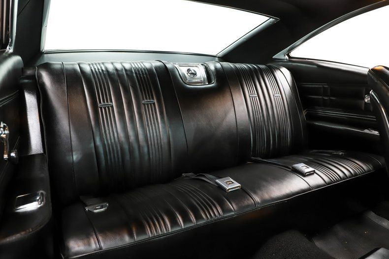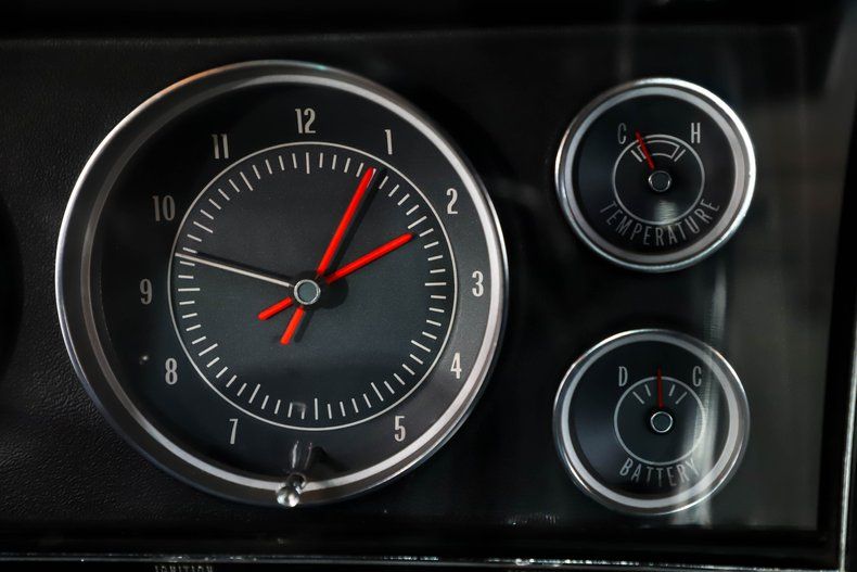 INTERIOR: Outstanding from carpet to headliner! It was completely gutted and put back together to look and function as it did on day one! All the soft items like the upholstery, door panels, carpet, headliner, visors etc. are in excellent shape. The fit and function is also impressive. All the bits and pieces: knobs, dash pad, glove box liner, heater controls look great as well. The 4-speed console is looking really good and has a correct reverse lock out shifter sticking out of it. There are some really great features including the rally dash with a tachometer, gauges, and clock. That multiplex 8-track stereo is rare and actually functions. It also has a deluxe wheel with reproduction floor mats on the floor as well.