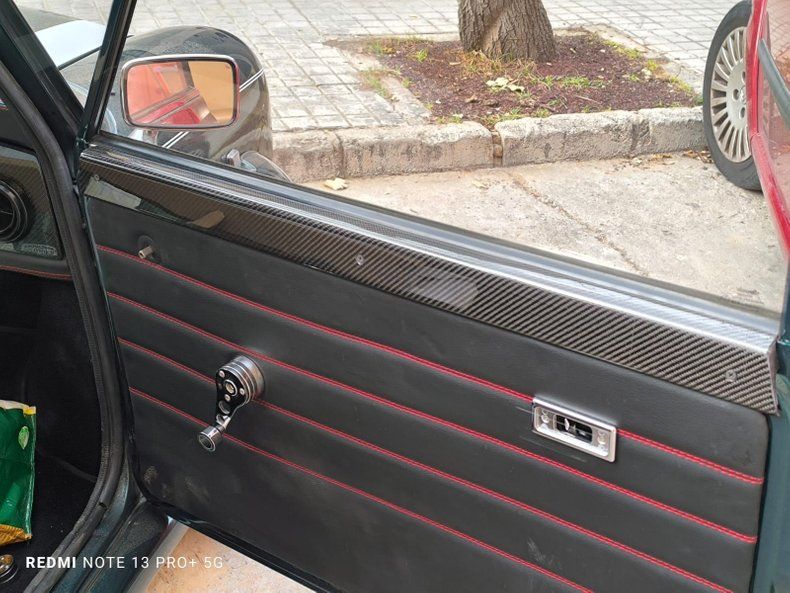 The 1,300 cc 4-cylinder engine produces 63 horsepower, giving this Mini a spirited performance that is further enhanced by road-approved semi-slick tires. The British Racing Green exterior is in excellent condition, and the interior has been completely renovated with premium black leather seats with red French seams, carbon fiber accents, and a custom Paddy Hopkirk steering wheel.
