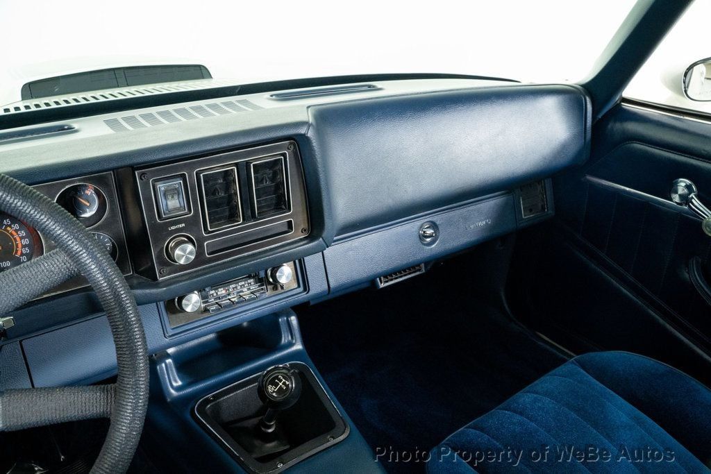 1980 Chevrolet Camaro Z/28 For Sale Complete Restoration of an Original Canadian Car with 8500 Kilometers/5,281 Miles! Driven Very Few Miles Since Restoration Factory Air Conditioning Numbers Matching 350ci V8 Engine Rare 4-Speed Manual Transmission 10 Bolt Rear End With Posi-Traction ~ 3.08 Ratio White Paint With a Beautiful Blue Cloth Interior Bucket Seats AM/FM/Cassette Stereo Original Build Sheet, Photo Book of the Restoration, Owner's Manual and Dealer Info Included For Sale by Owner Located in Greenwich, CT WeBe Autos Specializes in Marketing and Advertising Muscle, Classic, Vintage and Specialty Cars. We offer Professional Photography, HD Movies, and Staging that Sells Cars. Let us showcase and sell your specialty car. Please visit our website for more details. Keep in Touch, Michael Runnalls Specialty Car Marketing & Media WeBe Autos Ltd. Long Island, NY 11780 Michael@WeBeAutos.com www.WeBeAutos.com (O)631-339-0399 (C)516-729-2003 Skype: webeautos (F)631-389-2605 - - Cloth Interior Surface - Contact Michael Runnalls at 631-339-0399 or Michael@WeBeAutos.com for more information. -