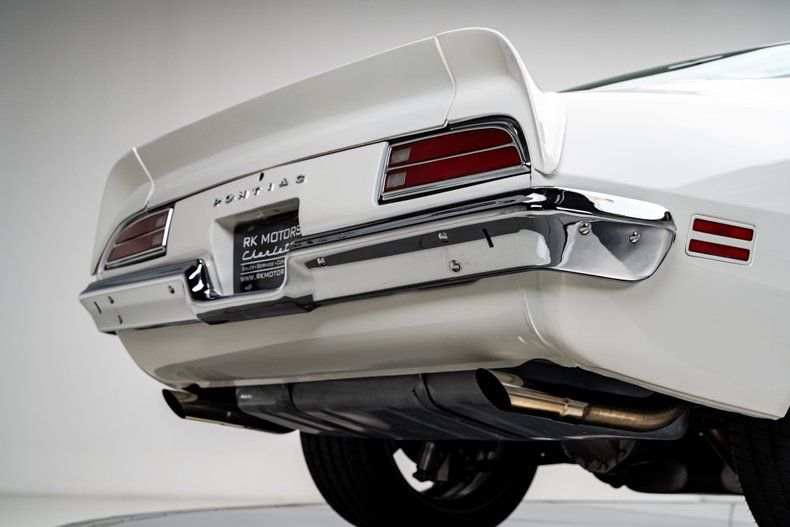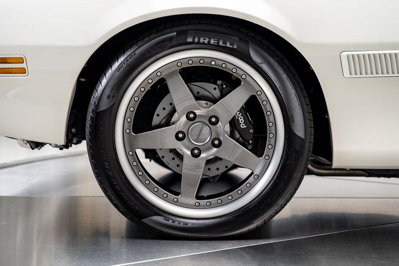 The body was stripped and reworked with new sheet metal where needed, including freshly mini-tubbed rear quarters, and refinished in a sharp white hue that pays tribute to the car's original Cameo White build. Flush-fit front and rear glass adds a modern edge without disrupting the mostly stock-appearing trim, which still includes original-style bumpers, turn signals, sport mirrors, and the signature nostril-style hood scoops. The Firebird sits with purpose on staggered 19-inch front and 20-inch rear Forgeline S03P wheels wrapped in sticky Pirelli P-Zeros, 285mm up front and 325mm out back.