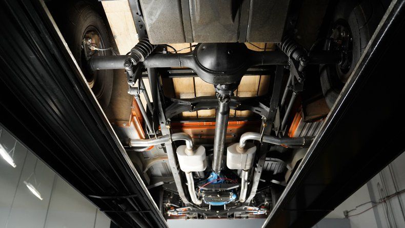 Fresh 460 V8 engine with only 700 miles since complete rebuild featuring new pistons, rings, pushrods, cam/lifters and gaskets provides serious motivation. Holley EFI electronic fuel injection feeds the big block, while a C6 3-speed automatic transmission with 2500 RPM stall transfers power to the 9" rear axle. Mustang II front end with tubular control arms and 4-link coilovers in the rear handle suspension duties. Four-wheel disc brakes with drilled and slotted fronts provide stopping power, and FlowMaster mufflers give the side pipes their aggressive tone.