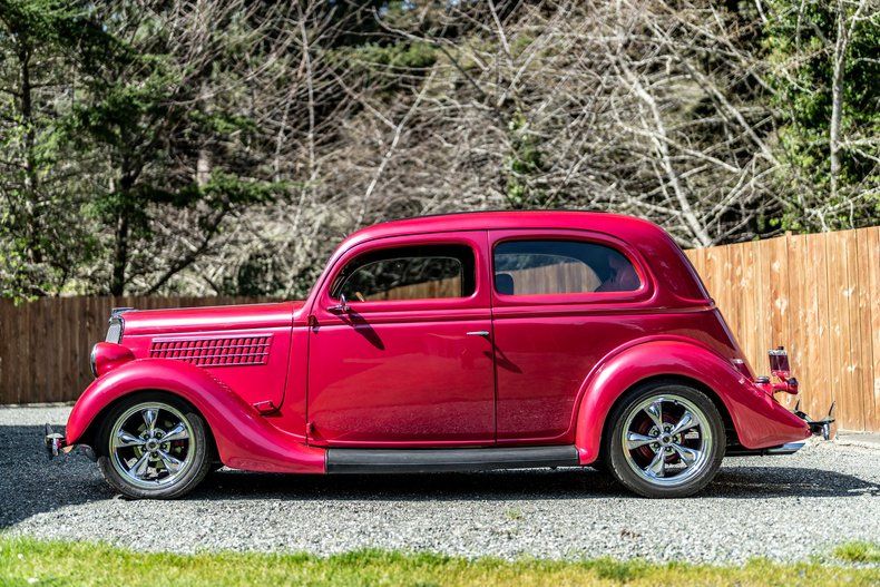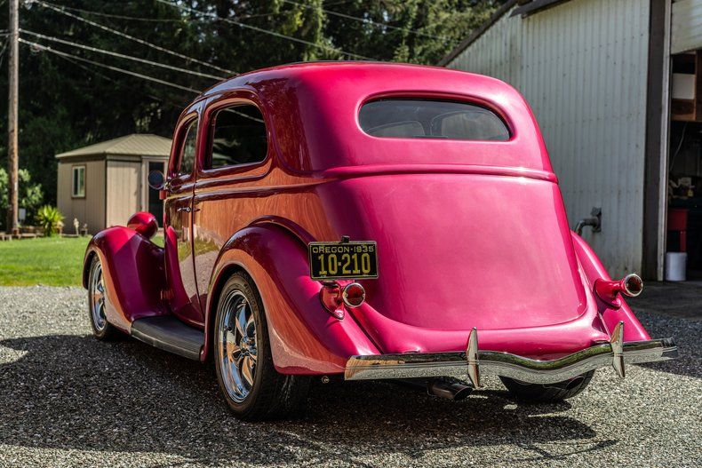 Classic 1935 Ford Slantback " All Steel Body 327 Cubic Inch V8 " Smooth and Strong Performance Automatic Transmission " Easy and Comfortable Driving New High Volume Oil Pump " Improved Engine Lubrication New Electric Fuel Pump " Reliable Fuel Delivery New Battery and Ground Straps " Strong Starting Power Radiator Completely Rebuilt " With Electric Thermal Fan Switch New Front and Rear Shocks " Painted to Match the Car, Rear Air Adjustable All New Brakes " Including Drums, Shoes, Rotors, Calipers, Pads, and Wheel Bearings System Flushed and Filled " Ready for the Road Headlights by Redline Lumtronics " Bright and Stylish Pink Exterior with Brown Interior " Unique and Eye-Catching Combination Minor Paint Chips Present " Overall Great Look Extra Matching Paint Included " For Future Touch-Ups Runs and Drives Excellent " Turn-Key Ready