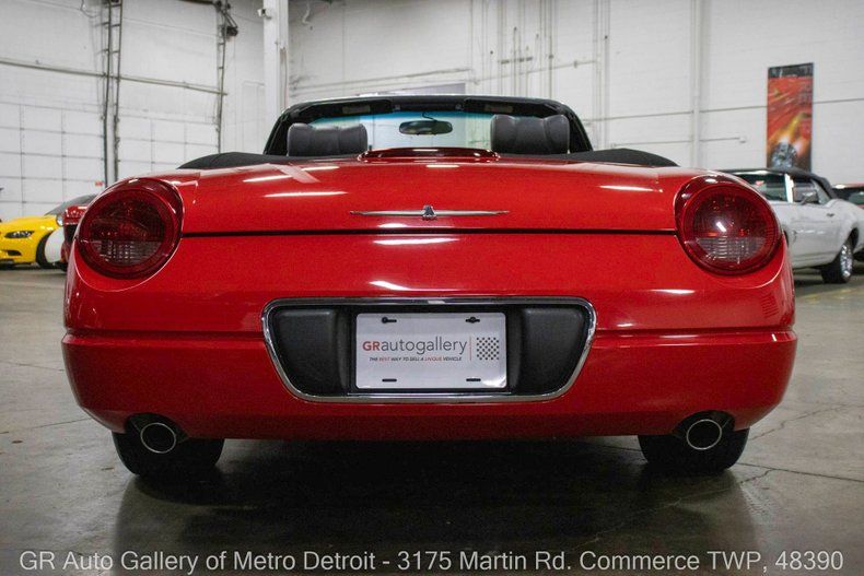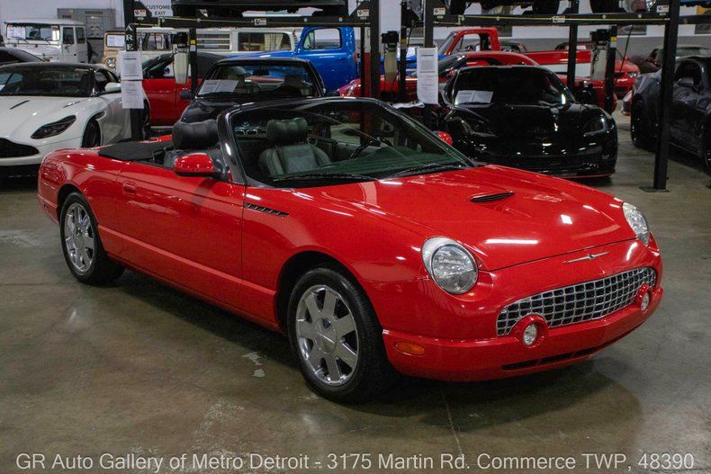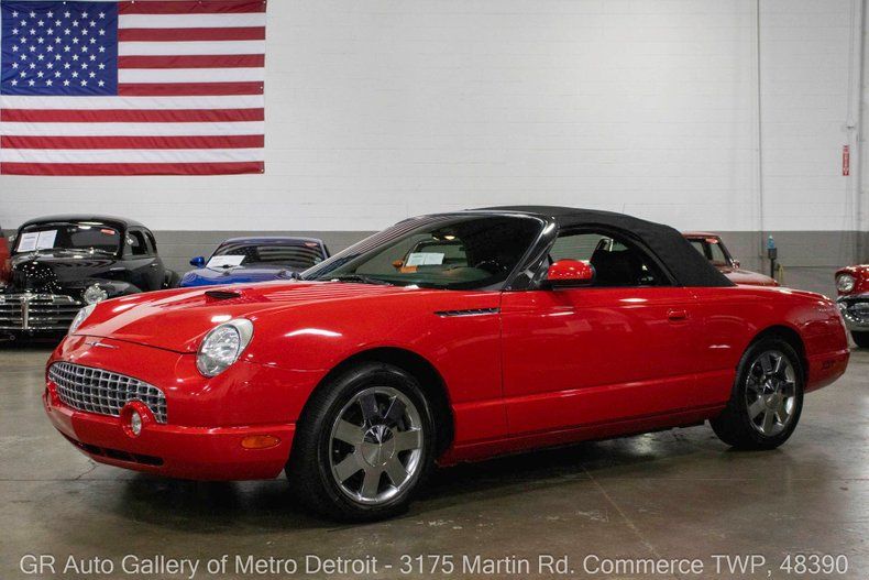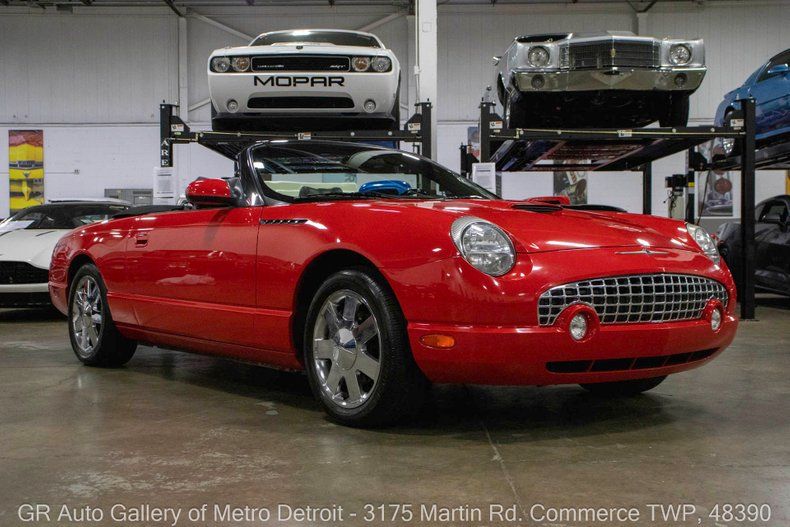 GR Auto Gallery is pleased to present this well-maintained 2002 Ford Thunderbird for your consideration. This modern classic comes finished in a vibrant Torch Red exterior over a clean Black interior and has just 52,348 miles on the odometer. Powering this Thunderbird is a 3.9L V8 engine paired with a smooth 5-speed automatic transmission. Notable features include a power convertible soft top, removable hard convertible top, power steering, power brakes, functional heat and air conditioning, two-way electronic seats, dual-zone climate control, powered windows, powered mirrors, intermittent wipers, and a spacious trunk. This example also boasts a clean Carfax and has been well cared for over the years. Drive this one out of our showroom or have us assist with shipping it to you anywhere in the United States! Don't hesitate to call us with any questions or for more information.