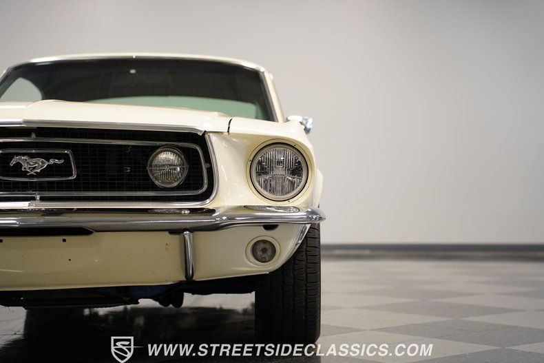 This 1968 Ford Mustang GT J Code Fastback, a true muscle car legend, roars with a Crisp White exterior that gleams under sunlight. The odometer shows just 52,620 and is believed to be original. This rare Mustang was maintained by the same family for four generations, and its outstanding condition reflects the great care it has received over the years. The fastback profile exudes raw power, accentuated by GT fog lights and side louvers that collectors love. Factory GT Mustang styled steel wheels provide a perfect blend of vintage aesthetics and muscle car flavor. The wheels are wrapped with P235/60R14 BF Goodrich Radial T/A tires that provide ample grip for this classic. The GT stripe kit adorns the sides, emphasizing the car's muscular lines.