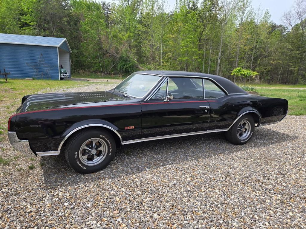 This 1967 Oldsmobile 442 is a true classic muscle car, finished in sleek black with a red accent stripe and vinyl top that captures the eras iconic styling. Powered by an engine coded 390925 and backed by a strong 12-bolt rear end with a limited slip differential, this car delivers authentic performance. Recent work includes a new fuel tank, body bushing set, and vinyl top, along with a rebuild of the intake manifold and cylinder head. The engine has been professionally checked, set, and fitted with new valve seals, guides, and valves to ensure reliable performance. Riding on period-correct wheels and BFGoodrich Radial T/A tires, this 442 stands out as a well-preserved and tastefully refreshed piece of Oldsmobile history.