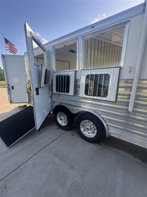 This 2020 4 Star 3-horse trailer with living quarters is a true one-owner unit featuring a 16' short wall, rear tack, and side load. Built by Trailboss in a modern farmhouse style, it offers bunk beds, a king bed, full kitchen, ducted A/C, LP furnace, and dual 20' awnings. Includes Alcoa wheels, ramps on both ends, stud wall, rear and horse-area cameras, and a rear receiver for towing. Polished aluminum exterior and always stored indoors. Located in Benton Harbor, MI 49022 For more information, please call 833-265-6113 and mention ID 77772