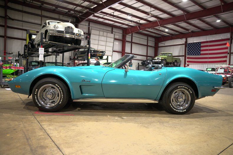 GR Auto Gallery is thrilled to present this beautifully preserved piece of Corvette heritage. This 1973 Chevrolet Corvette Convertible offers an authentic driving experience with just 9,394 miles on the odometer and long-term ownership dating back to 1978. Finished in striking Medium Blue with a black racing stripe and paired with a blue-grey leather interior, this drop-top delivers classic American style with unmistakable flair. Powered by a 350 V8 and mated to a 4-speed manual transmission, this Corvette retains its original rear-wheel-drive layout, delivering a raw and engaging feel that defines the early '70s sports car era. Its 15-inch factory wheels, wrapped in BF Goodrich radial tires, and chrome rear bumper, only offered during the transitional 1973 model year, add to its collectible appeal.