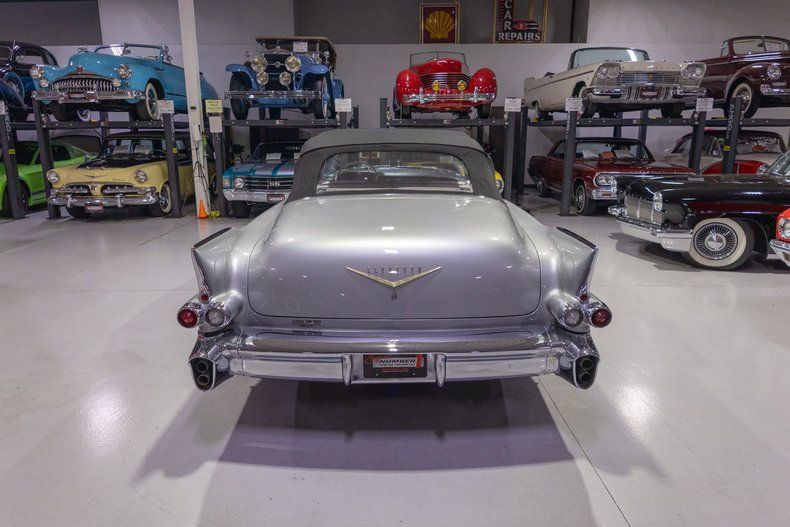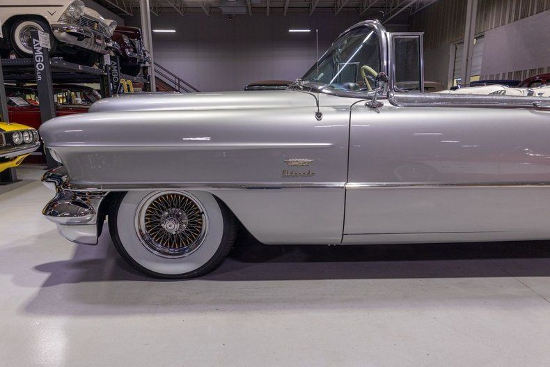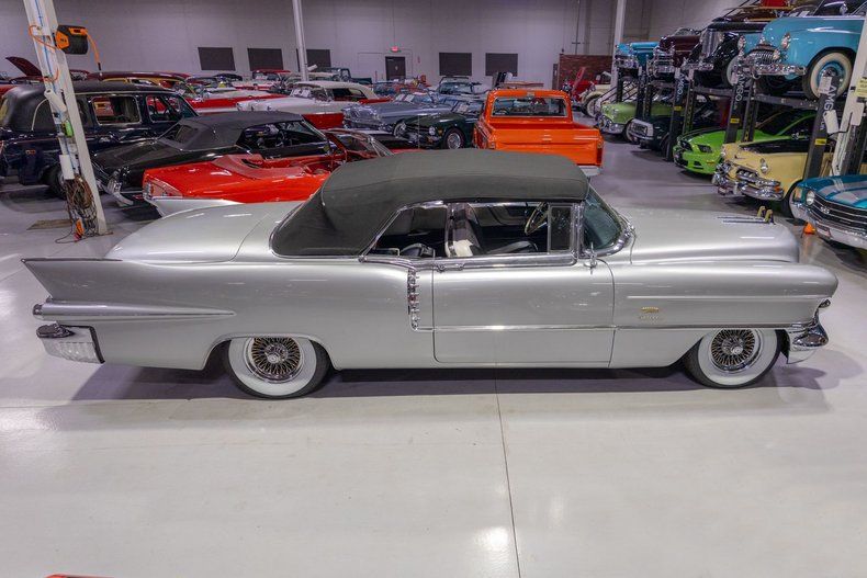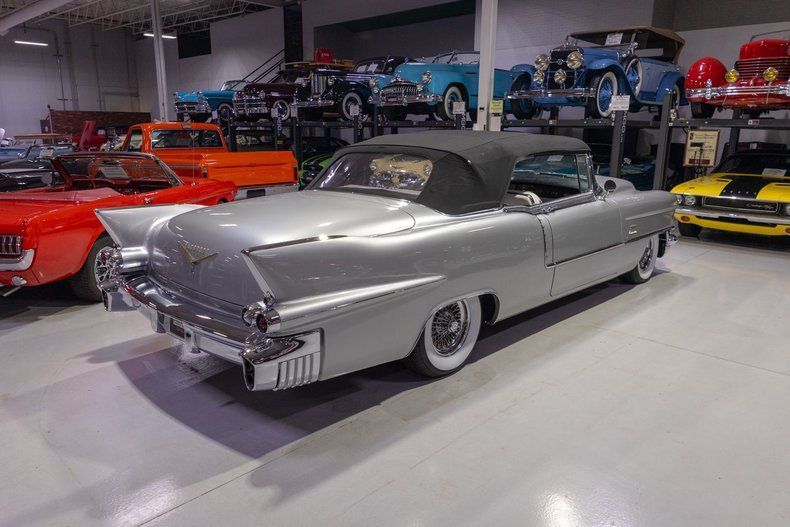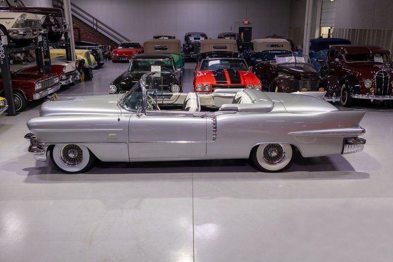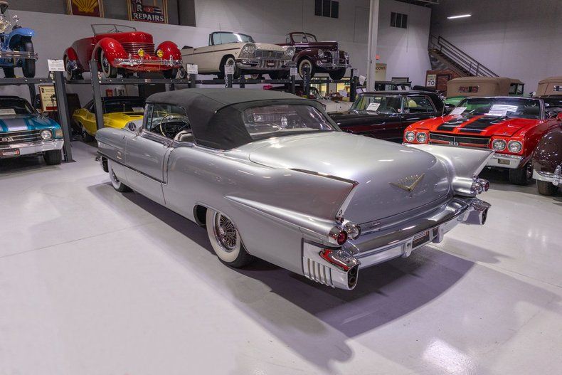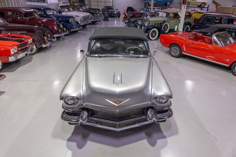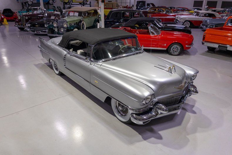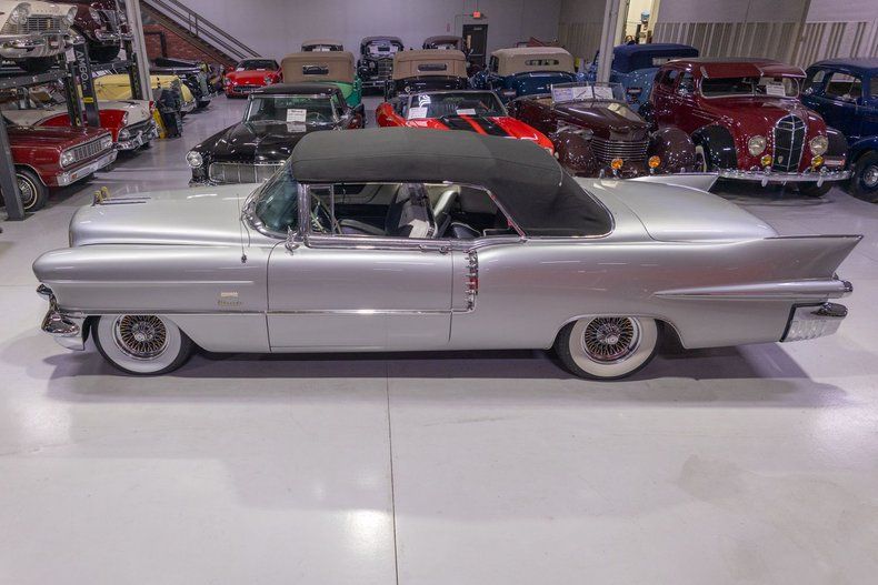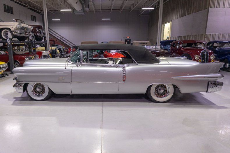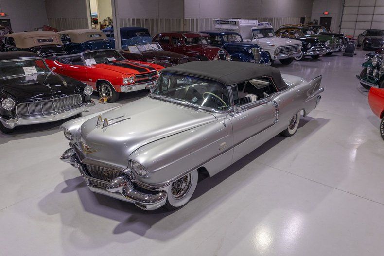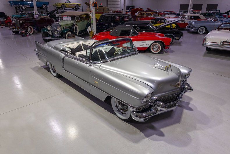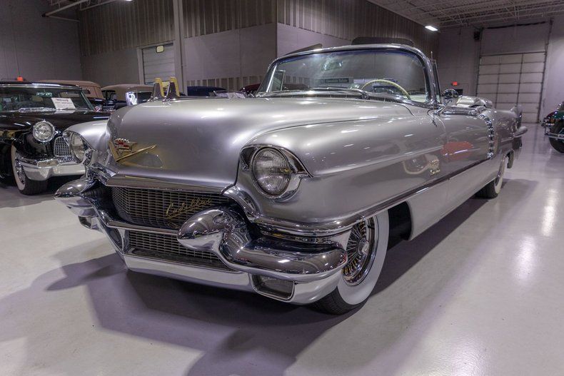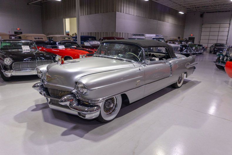This 1956 Cadillac Eldorado Biarritz Convertible is a gorgeous, luxurious, and correctly restored 50s cruiser that is ready to be your next luxury cruiser! In the middle of 1953, Cadillac introduced the Eldorado Convertible as its addition to General Motors' Motorama convertible display that also included the Buick Skylark and Oldsmobile Fiesta. Interestingly, and contrary to common practice with regards to most show cars, the Eldorado was actually placed into production on the heels of the Motorama display and was available for purchase in 1953. Initially produced in very limited quantities, the first Eldorados were touted as being the absolute best and most luxurious Cadillac had to offer. Over the next few years, the Eldorado cemented itself atop Cadillac's model hierarchy and was considered by many as the ultimate status symbol among high society. The 1956 model year was an incredible, record-setting year for Cadillac with the GM marque selling over 150,000 units for the first time in its storied history. The reasons behind Cadillac's massive year of sales in '56 is twofold. First of all, Cadillac was the undisputed leader in its high-end luxury market with its primary competitors at the time, Packard, Imperial, and Lincoln, all struggling. Both Lincoln and Imperial just weren't garnering the same attention as Cadillac, and Packard was in dire financial straits and on its last legs as a company. Second, Cadillac's product offerings were bounds and leaps above the competition from the impeccable styling to the technological advancements often included by Cadillac as standard equipment. Although the 1956 Cadillacs were, for the most part, left unchanged from a design perspective from the previous year, the modest design improvements that were updated in '56 allowed the 1956 Cadillac to remain unmistakably iconic. 1956 was also notable for its top-of-the-line Eldorado product line as its was the first time since the Eldorado's introduction that Cadillac offered the Eldorado in both closed and open car configurations, known as the Eldorado Seville and Eldorado Biarritz respectively. Described by Cadillac as having an "even more impressive strength, dignity and grace," the refined front ends of the 1956 Cadillacs are exactly that. With flatter hoods and front fenders, along with an impressive amount of chrome and a new-look grille design featured an updated fine crosshatched texture along with a new, unmistakable "Cadillac" script insignia, the nose of the 1956 Cadillac is one of the most beautiful American-made cars of all time. Further elevating the already incredibly elegant design of the 1956 Cadillac, the 1956 Eldorado models received special pointed rear fender fins that were larger than Cadillac's more entry-level models, that along with special Eldorado twin hood ornaments, differentiated Eldorado above all other Cadillacs. The Eldorado's interior was also even more plush and more fully featured than the lower level Cadillacs, but perhaps the biggest upgrade was found under the hood with the more potent dual quad 305 horsepower engine that was standard Eldorado equipment and only available as an upgrade in Cadillac's Series 75 limousine line. In total, a mere 2,150 Eldorado Biarritz Convertibles were produced in 1956, which makes this particular example quite a rare car. Powering this 1956 Eldorado Convertible is a Numbers Matching 365 cubic inch V8 topped by dual 4 barrel carburetors that are mounted underneath the iconic "Batwing" air cleaner assembly; together they were said to have generated a whopping 305 horsepower when new. The dual quad 365 V8 is mated to a Hydra-Matic Automatic Transmission that makes this '56 Cadillac an easy convertible for anybody to drive. Exhaust exits the 305hp Cadillac power plant via a dual exhaust setup that generates a terrific throaty sound and makes for the perfect soundtrack during summer cruising. Being that this convertible is a Cadillac, it unsurprisingly comes loaded with luxurious options! With power steering, maneuvering into a tight parking space at the local golf course or car show is a total breeze and can be accomplished with a single hand. Further aiding with parking efforts are a pair of chrome outside mirrors that greatly improve sight lines when parking or even when changing lanes. Power brakes are another welcome feature on this '56 Eldorado Biarritz since stopping is much easier which is especially important when driving this nearly 5,000 pound luxury cruiser. The black Haartz cloth power convertible top is in wonderful shape as well and it goes up and down with the simple flick of a switch. Additionally, when the convertible top is in the lowered position, it tucks neatly below the included (and rarely seen) parade boot. Riding on a set of chrome wire wheels, each mounted with wide whitewall radial tires, this '56 Eldorado has a great look and even better ride. The body of this 1956 Eldorado Biarritz has been correctly refinished in Starlight Silver paint that completes the exterior look of this fantastic automobile. The interior of this 1956 Cadillac Eldorado Biarritz Convertible is incredibly luxurious! The front and rear seats have been refurbished and sport correct White and Black leather upholstery. The matching two-tone door panels, black carpeting with integrated floor protectors, black padded dash, and steering wheel all appear to be in wonderful shape as well and retain a nice stock appearance. The interior is also particularly well-featured including power windows as well as a power front seat, both of which are great options for a classic 50s cruiser. The instrument cluster remains in its stock configuration complete with a 120 MPH speedometer, temperature gauge, and fuel gauge. The stainless trimmed dash is finished off with a push-button signal seeking AM radio, clock, locking glovebox, driver's and passenger's ash receivers, as well as various other controls for this classic Cadillac. Whether you're buying your 