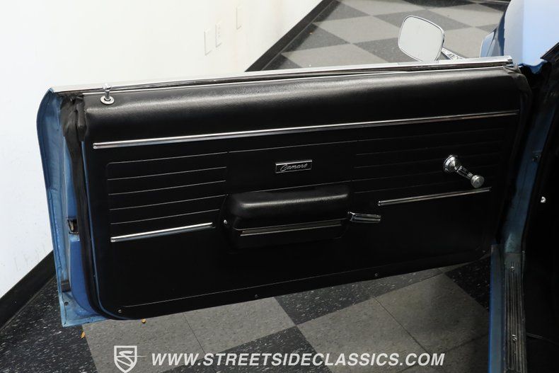 454 V8 Engine Muncie 4-Speed Manual Transmission Edelbrock Intake Manifold 4-Barrel Carburetor Hooker Headers Power Front Disc Brakes Aluminum Radiator with dual electric fans 10-Bolt Rear End Blue Paint With White Stripes 15" Rally Wheels 225/60R15 Front, 235/60R15 Rear Tires Detroit Speed Electric Hideaway Headlights Raised Cowl Hood Chrome Bumpers Black Vinyl Bucket Seats Hurst Shifter Power Steering Center Console With Gauges Aftermarket Steering Wheel With Tilt Column Bluetooth AM/FM Radio