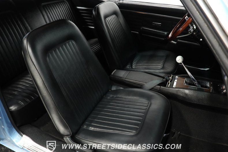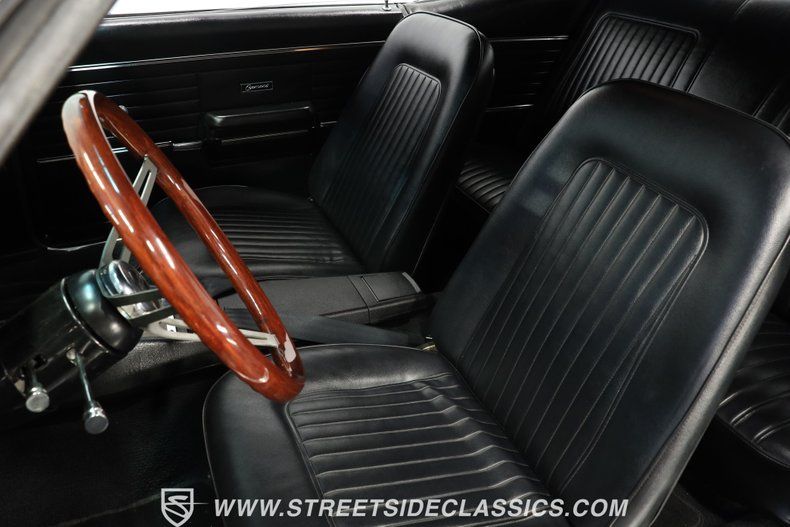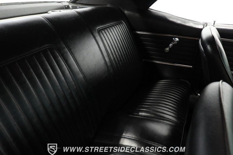 Black vinyl bucket seats greet you upon opening the door. The all-black cabin stays true to '68 style but has several modern touches. The Hurst shifter rises from the center console, which also contains extra gauges to watch engine vitals. An aftermarket steering wheel on a tilt column lets you adjust for comfort. A Bluetooth AM/FM radio updates the audio while looking appropriate in the dash. The interior balances vintage appeal with updates that enhance the driving experience.