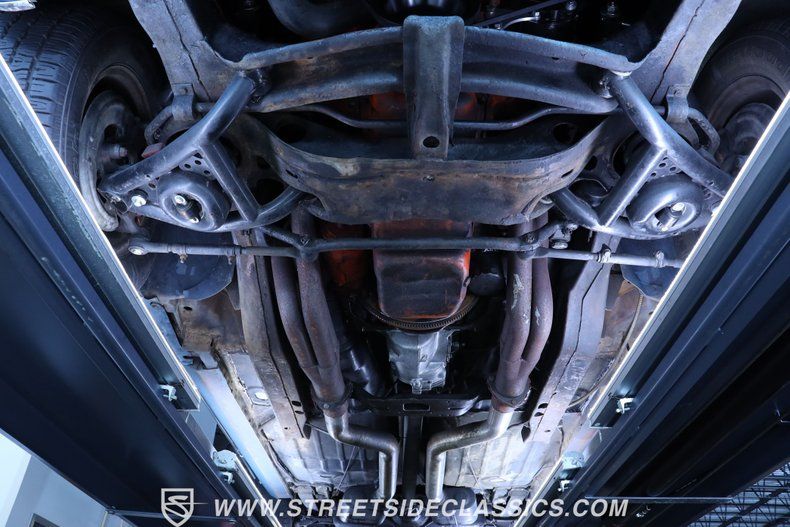 A massive 454 cubic inch V8 dominates the engine bay. An Edelbrock intake manifold and 4-barrel carburetor top the motor, while Hooker headers help the exhaust exit. The Muncie 4-speed manual transmission lets you row through the gears, connecting to a 10-bolt rear end. Power steering helps with handling, and power front disc brakes slow things down when needed. An aluminum radiator with dual electric fans helps keep the big V8 cool during long drives or while idling in traffic.