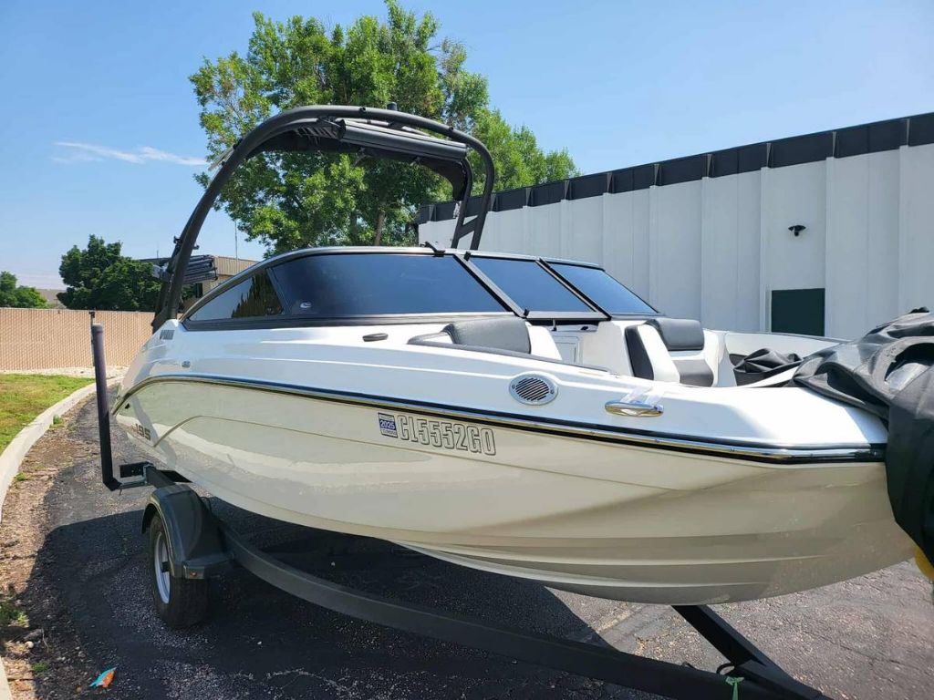 This gorgeous 2025 Yamaha AR195 jet boat is loaded with upgrades and ready for family fun on the water. With only 40 total hours, its practically brand new and comes with 5 years of transferable warranty for peace of mind. Powered by a supercharged 1.8L Yamaha SVHO engine, this powerboat delivers thrilling performance and smooth handling. Its equipped with a wakeboard tower, tinted windows, Wet Sounds soundboard, dual swivel wakeboard racks, and guide poles for all your watersport needs. Inside, youll enjoy a premium sound system, 7" Connext touchscreen with audio and navigation, custom Marine Mat flooring, plush seating with a removable table, a swim platform, and a bimini top. This boat is in excellent condition and offers everything a family could want for a fun and stylish day on the water.