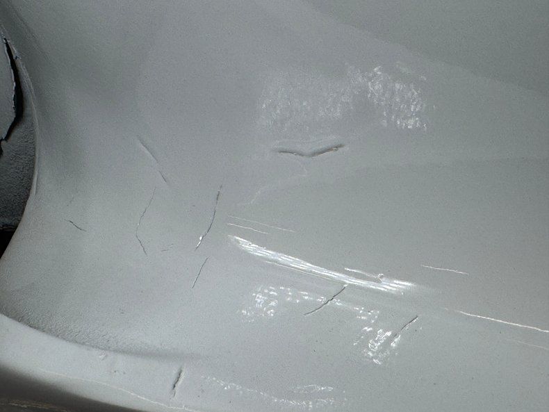 Classic White lacquer paint colors this car like a sleek Stormtrooper from another planet! Just like the Star Wars characters, this one is accented with black on the front bumper guards, the rear bumper guards, the T-tops, and of course, the tires. Those 225/70R15 meats surround 15" Luxor Wire wheels which will also help you identify your Corvette among other C3's and the knock offs wear a black Luxor cap. Chrome headers emerge from the underside and ride the rocker panels, giving way to the big chrome side pipes and their vented heat shields and out-turned tips. Fifteen vents are cut into each side of the power bulge on the hood while hidden headlights ahead help define the Corvette allure. Imperfections include some wavy paint and a chip on the hood, some chips on the nose, scratches, paint runs and painted over chips.