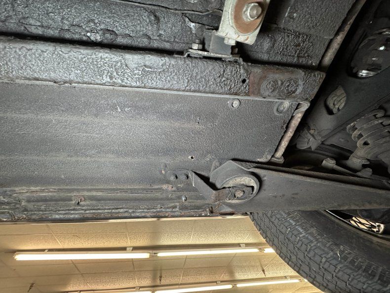 Undercarriage We find driver quality conditions underneath with some surface rust, oil on the rear differential that migrated down to an exhaust pipe, and some build up on the rear wheel components. There is also an area of rust and a former repair on the left belly pan. Dual exhaust flow through stock style mufflers on their way to the epic exit and disc brakes are found on all four wheels. Both front and back suspension is independent and consists of coil springs in the rear and torsion bars up front.