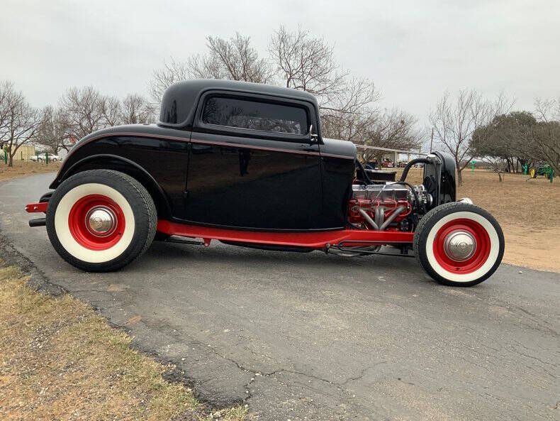 1932 Ford Highboy 3-Window Deuce Coupe Located at Street Dreams - 1229 Texas Ave Shreveport, LA - Call for more information: (318) 210-0982 Welcome to Street Dreams as we celebrate our 26th year in classic car and memorabilia sales! Our Shreveport, LA location is outta to offer the ultimate Show & Go icon: 1932 Ford 3-Window Highboy! Few cars carry the weight of 90 years of hot rod history like the 1932 Ford Deuce Coupe. This 3-Window Highboy was meticulously built to capture that legendary style while integrating modern performance, safety, and comfort for the discerning collector. Featuring a chopped roofline and the quintessential Highboy stance, this build is the definitive statement in American hot-rodding. Specs: Drivetrain & Performance * Engine: 355 ci small-block Chevy V8 delivering approximately 435 horsepower. * Fuel System: Sniper EFI electronic fuel injection for modern reliability and performance. * Intake & Exhaust: Weiand aluminum intake manifold, stainless steel headers, and custom dual exhaust. * Cooling: High-performance PRC aluminum radiator equipped with an electric fan. * Ignition: HEI high-energy ignition for consistent firing. * Transmission: Automatic transmission, engineered for effortless drivability in town or on the highway. * Rear End: Bulletproof Ford 9-inch rear differential offering unmatched strength. Chassis, Suspension & Braking * Chassis: Precision-engineered Street Rods by Michael chassis, built October 2006. * Body: High-quality fiberglass body with smoothed doors and clean lines. * Front Suspension: Traditional dropped front axle with hairpin radius rods and transverse leaf spring. * Rear Suspension: Adjustable threaded-body coilover shocks for precision-tuned ride quality. * Frame Modification: Custom C-notched rear frame rails to maintain a low profile with full suspension travel. * Braking System: Modern front disc brake conversion with vented steel rotors and single-piston calipers, paired with classic hydraulic rear drums. * Lines: Braided stainless steel high-pressure flex lines for superior pedal feel. Interior & Amenities * Climate: Vintage Air climate control featuring both A/C and heat for multi-season comfort. * Seating: New bomber-style bucket seats with competition-inspired drilled aluminum backplates. * Steering: Chrome Ididit tilt steering column. * Tech: Autometer gauge package and an AM/FM/CD stereo integrated with a backup camera. * Detailing: Period-inspired 8-ball shifter knob and custom-accented gas cap and valve stems. Exterior & Aesthetics * Finish: Deep Black paint contrasted by a Vibrant Red frame and suspension accents. * Wheels: Red steel wheels with chrome caps and trim rings. * Tires: BFGoodrich Radial T/A wide whitewall tires, providing vintage looks with modern radial grip. * Lighting: Authentic Ford Twolite headlamps and custom-fitted taillights. Investment Opportunity: A quality 1932 Ford remains the single most desirable body style in hot rodding. This build is a stable, high-demand asset that offers the best-of-both-worlds-the aggressive profile of a traditional rod with the cooling, braking, and fuel systems of a modern machine. It is show-ready and built to be driven. Contact Street Dreams Shreveport location today: * Phone: (318) 210-0982 * Email: Contact@streetdreams-la.com * Location: 1229 Texas Ave, Shreveport, LA 71101 *Street Dreams is a full-service dealership committed to helping you secure trusted delivery, insurance, and financing services to complete your classic car purchase. While we're happy to assist in arranging shipping through reputable carriers, all transportation costs are the responsibility of the buyer.