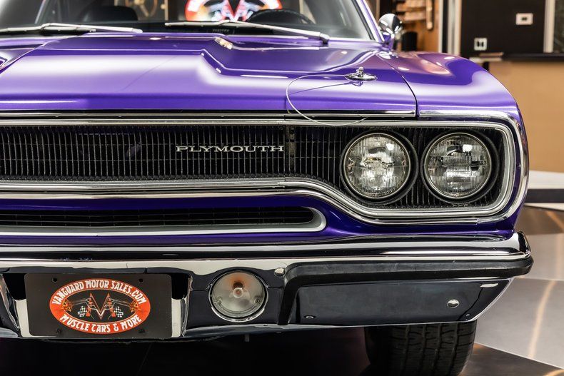 Check out this beautiful 1970 Plymouth Roadrunner! This Roadrunner has undergone a complete & meticulous frame-off restoration with no expense spared! This Roadrunner is finished in beautiful In-Violet Purple Exterior Paint along with Roadrunner Graphics and Magnum 500 Wheels Wrapped In BFGoodrich Radial T/A Tires! Under the hood sits a Mopar 440ci V8 paired with Six Pack Carburetors! Power is sent to the rear wheels through a 727 Automatic Transmission, & Factory Style Rear End with a 3.55:1 Gear Ratio. Additional Features Include, Front Disc Brakes, Factory Style Exhaust, Power Steering, New Hardware, New Brake Lines, New Suspension, New Fuel Lines and a New Gas Tank!