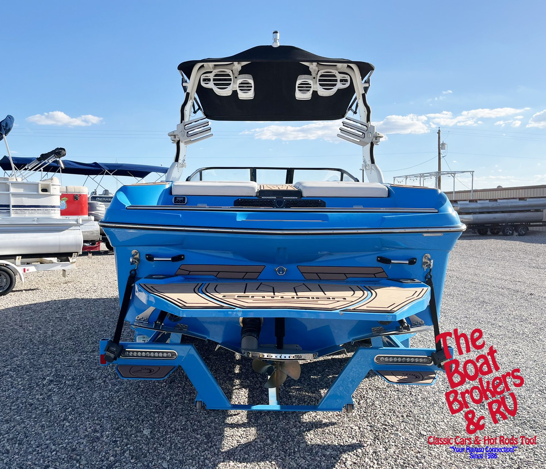 Take your lake days to the next level with this 2018 CENTURION FI23! At 23 feet, it's built with an Opti-V hull for a smooth, stable ride and designed to deliver world-class wakes and waves. The QuickSurf Pro System gives you ultimate control for surfing on either side, while the Ski Tower with speakers lets you enjoy your favorite music while riding in style.