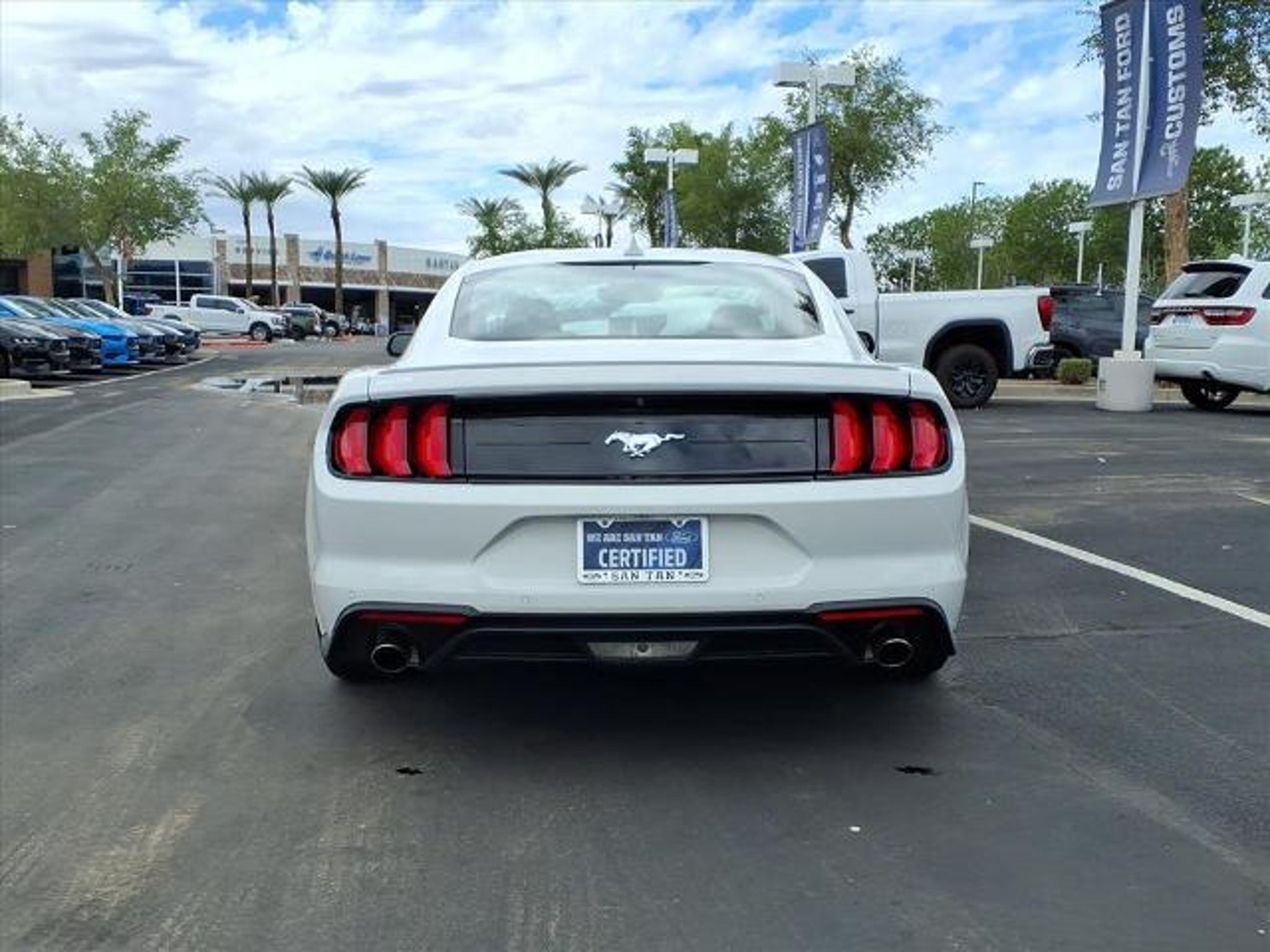 SAN TAN FORD STANDS OUT AS ONE OF THE NATIONS FASTEST-GROWING FORD DEALERSHIPS DELIVERING EXCEPTIONAL PERFORMANCE AND GROWTH FOR THE PAST 18 YEARS. Certified. 2021 Ford Mustang EcoBoost Premium Equipped with Android Auto Apple Car Play 12 LCD Digital Instrument Cluster w/MyColor 3.15 Limited Slip Rear Axle Ratio Adaptive Cruise Control Auto High-beam Headlights Brake assist Electronic Stability Control Equipment Group 201A Exterior Parking Camera Rear Ford Safe & Smart Package Heated Steering Wheel Integrated Turn Signals Leather-Trimmed Bucket Seats w/Color Accents Memory Driver Seat Mirrors & Ambient Lighting Universal Garage Door Opener (UGDO) Voice-Activated Touch-Screen Navigation System. Odometer is 46318 miles below market average! 21/32 City/Highway MPG Certification Program Details: San Tan Ford Certified: Unleash Worry-Free Adventures! Buckle up for unmatched reliability! Your vehicle aced our intense 160-Point Quality Inspection under the San Tan Ford Certified Program delivering peak performance and ironclad peace of mind. Enjoy complimentary 3-Month/4000-Mile coverage (whichever hits first) on vital systems - because every drive should thrill not stress. Heres the powerhouse protection breakdown: Engine Mastery: . Timing cover: Guards essential timing components from debris and grime for flawless operation. Transfer Case Dominance: . Transfer case & all internal lubricated parts: Ensures seamless power distribution in AWD/4WD beasts. Drive Axle Power: . Drive axle(s): Channels raw power to wheels for unstoppable propulsion. . Constant velocity joints (CV joints): Covered unless failure stems from ignored damaged driveshafts (boots excluded). . Universal joints: Flexibly transmit power while keeping everything aligned. A/C Cool Command: . Compressor: The core that compresses refrigerant for icy cabin bliss. . HVAC control: Masters heating venting and cooling for ultimate comfort. . Expansion valve & orifice tube: Fine-tune refrigerant flow for max efficiency. Transmission Triumph: . Transmission: Handles gear shifts and power delivery like a champ. . Flex plate: Links engine to torque converter in autos for smooth starts. . Vacuum modulator: Adapts to engine load for effortless shifting. . Transmission mounts: Anchor it firmly to cut vibrations and boost stability. This certification isnt just a stamp - its your adventure ally backed by extended warranty on these critical zones. Conquer commutes or wild escapes with total confidence! For complete terms check official San Tan Ford Certified docs. Enhance your ride with optional dealer-installed protections available beyond the vehicles asking price. Add the LoJack Anti-Theft GPS Tracking System for $995! San Tan Ford proudly serves Gilbert Chandler Phoenix and nearby communities!