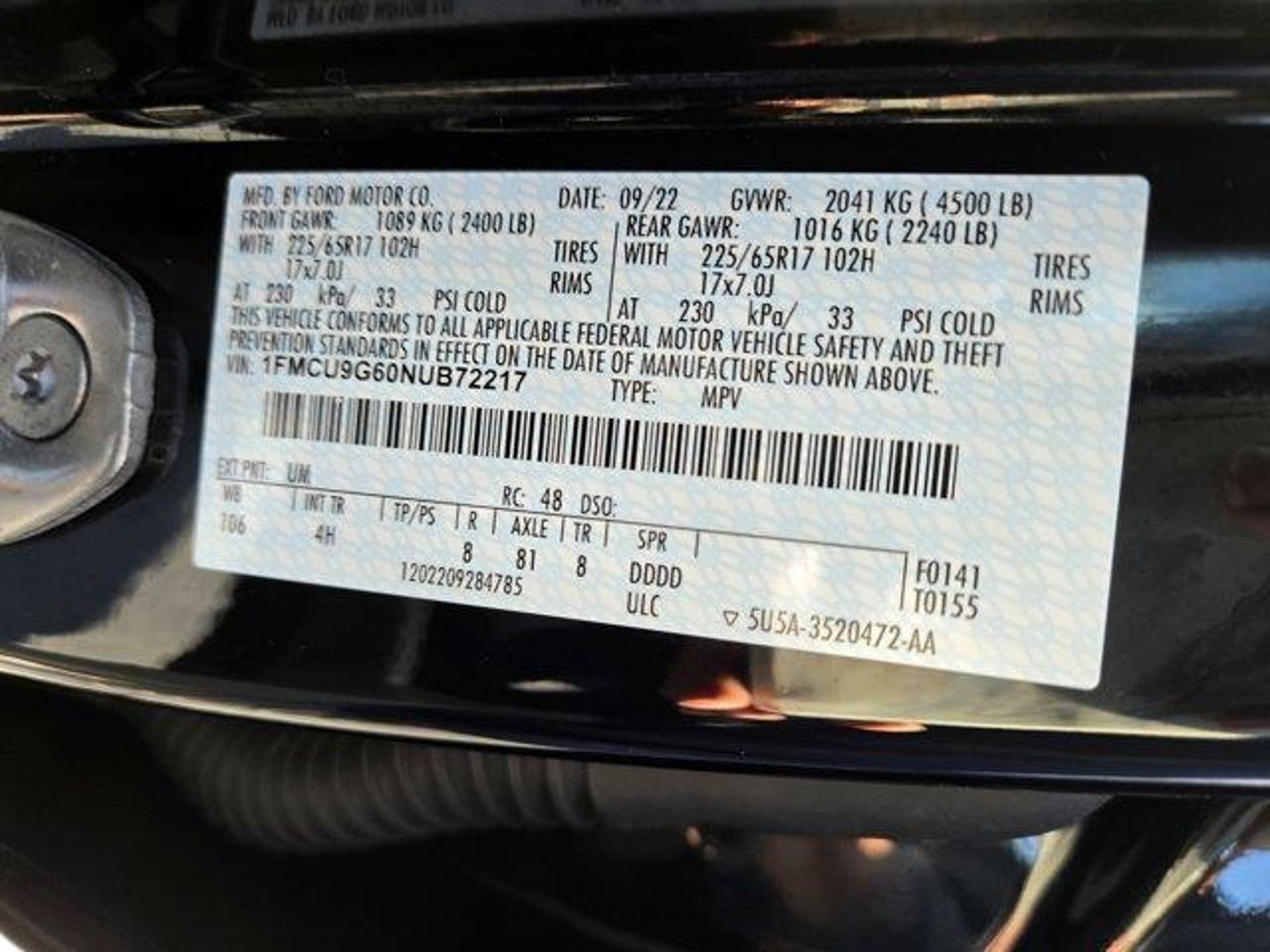 VIN 1FMCU9G60NUB72217