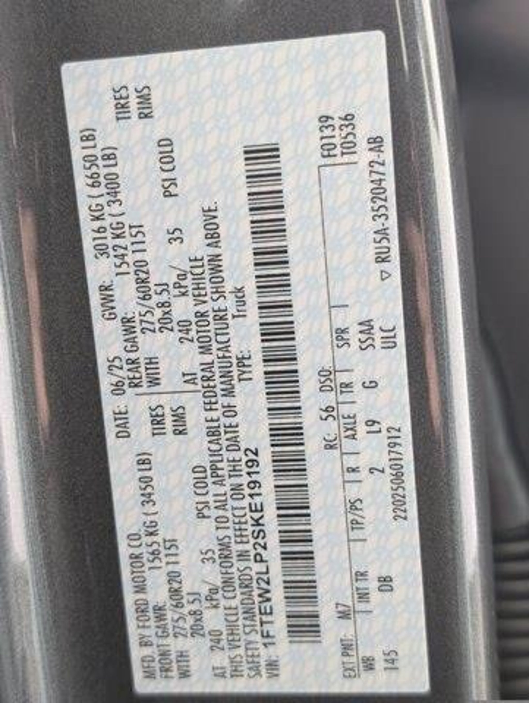 Gray Metallic 2025 Ford F-150 2.7L V6 EcoBoost STX 4D SuperCrew Price includes: $1000 - Final Days Mega Bonus Cash. Exp. 01/02/2026 $1250 - Retail Bonus Cash. Exp. 01/05/2026 $2000 - Retail Customer Cash. Exp. 01/05/2026 $500 - Retail Bonus Cash. Exp. 01/05/2026 VISIT TO SCHEDULE TEST DRIVE!Equipment Group 200A MidGVWR: 6650 lbs Payload Package20 inch WheelsWheels: 18 inch Gloss BlackWheels: 20 inch Gloss BlackWheels: 20 inch Dark Gray w/Machined AluminumUnique Sport Cloth 40/Console/40 Front-SeatsRadio: AM/FM Stereo w/SiriusXM 360LSTX Black Appearance PackageTray Style Floor Liner w/Carpet MatsIntegrated Trailer Brake ControllerFront License Plate BracketBlack Exterior BadgingGray Box Side DecalLED Fog Lamps w/LED Cornering Lamp6 inch Black Running BoardsSYNC 4 w/Enhanced Voice Recognition4-Wheel Disc BrakesInternet access capable: FordPass Connect 5GEmergency communication system: SYNC 4 911 AssistAM/FM radio: SiriusXM with 360LAuto High-beam HeadlightsCompassFront beverage holdersVariably intermittent wipersTrip computerTraction controlTilt steering wheelTelescoping steering wheelSteering wheel mounted audio controlsSplit folding rear seatSpeed controlSecurity systemRemote keyless entryRear window defrosterRear step bumperRadio data systemPower windowsPower steeringPower door mirrorsPassenger vanity mirrorPassenger door binPanic alarmOverhead consoleOverhead airbagOutside temperature displayOccupant sensing airbagLow tire pressure warningIlluminated entryHeated door mirrorsFully automatic headlightsFront wheel independent suspensionFront reading lightsFront anti-roll barDual front side impact airbagsDual front impact airbagsDriver door binDelay-off headlightsBumpers: body-colorBrake assistAlloy wheelsABS brakesVoltmeterTachometerRear Parking SensorsFront Center ArmrestFront Bucket SeatsElectronic Stability ControlAir Conditioning6 Speakers ENGINE: 2.7L V6 ECOBOOST -inc: auto start-stop technology (STD) Turbocharged Four Wheel Drive Tow Hitch Power Steering ABS 4-Wheel Disc Brakes Brake Assist Aluminum Wheels Tires - Front All-Terrain Tires - Rear All-Terrain Conventional Spare Tire Tow Hooks Heated Mirrors Power Mirror(s) Rear Defrost Intermittent Wipers Variable Speed Intermittent Wipers Privacy Glass Power Door Locks Daytime Running Lights Automatic Headlights LED Headlights Automatic Highbeams AM/FM Stereo Auxiliary Audio Input Satellite Radio MP3 Capability Steering Wheel Audio Controls Auxiliary Audio Input Requires Subscription Pass-Through Rear Seat Rear Bench Seat Adjustable Steering Wheel Trip Computer Power Windows WiFi Hotspot Keyless Entry Power Door Locks Cruise Control A/C Cloth Seats Bucket Seats Driver Adjustable Lumbar Passenger Vanity Mirror Floor Mats Smart Device Integration Requires Subscription MP3 Capability Steering Wheel Audio Controls Bluetooth Connection Telematics Auxiliary Audio Input Smart Device Integration Requires Subscription Power Windows Power Door Locks Trip Computer Security System Immobilizer Traction Control Stability Control Traction Control Front Side Air Bag Rear Parking Aid Blind Spot Monitor Cross-Traffic Alert Rear Collision Mitigation Lane Departure Warning Lane Keeping Assist Lane Departure Warning Front Collision Mitigation Driver Monitoring Evasion Assist Tire Pressure Monitor Driver Air Bag Passenger Air Bag Passenger Air Bag Sensor Front Head Air Bag Rear Head Air Bag Child Safety Locks Back-Up Camera