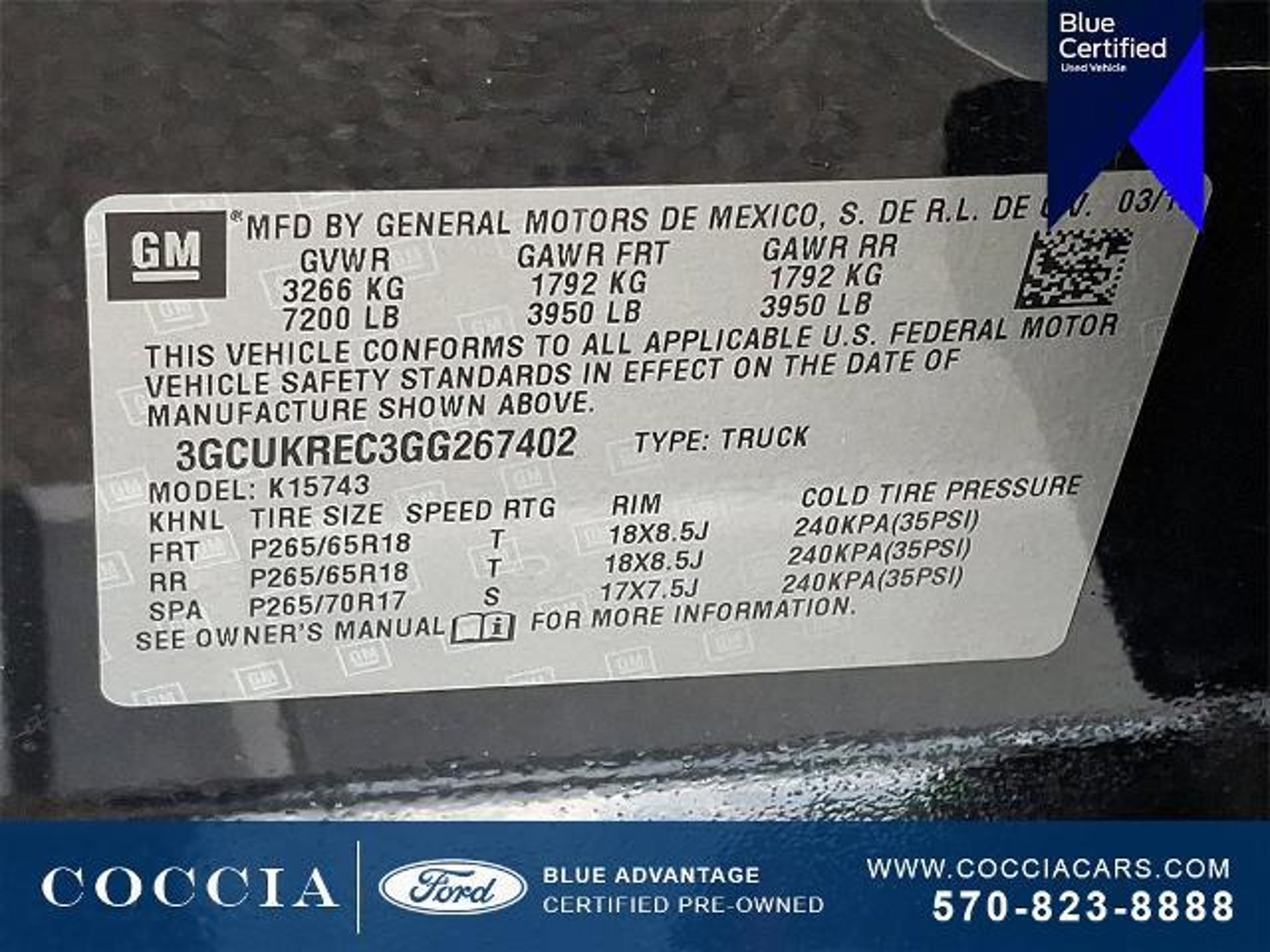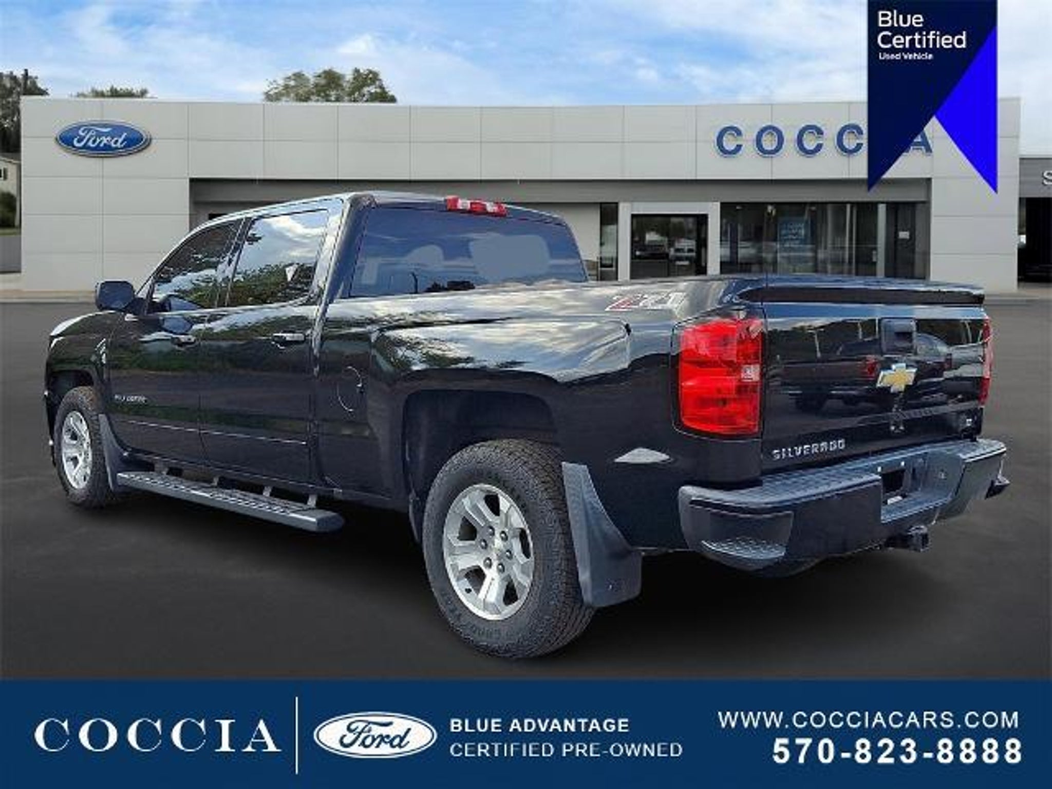 Owned Vehicles include a 3 month / 4000 mile Ford limited warranty coverage* 139 point inspection performed by a COCCIA factory trained technicians Vehicle History report 24/7 Roadside Assistance and 3 months of SirusXM Satellite Radio. COCCIA has been Family Owned and Operated for over 35 years. Certified. 4D Crew Cab 4WD EcoTec3 5.3L V8 6-Speed Automatic Electronic with Overdrive 16/22 City/Highway MPG Buy at Coccia and receive complimentary inspections for the life of your vehicle Complimentary car wash with every service visit Convenient Saturday service department hours available Family owned and operated for over 35 years! 6-Speed Automatic Electronic with Overdrive 4WD Jet Black Cloth 10-Way Power Drivers Seat Adjuster 110-Volt AC Power Outlet 150 Amp Alternator 4.2 Diagonal Color Display Driver Info Center 40/20/40 Front Split Bench Seat 6 Speaker Audio System 6 Speakers Air Conditioning All Star Edition Alloy wheels AM/FM radio: SiriusXM Bed Liner Bluetooth® For Phone Body Color Bodyside Moldings Body Color Door Handles Body-Color Mirror Caps Body-Color Power Adjustable Heated Outside Mirrors Bodyside moldings Brake assist CD player Cloth Seat Trim Color-Keyed Carpeting w/Rubberized Vinyl Floor Mats Compass Deep-Tinted Glass Delay-off headlights Driver Front Passenger Illuminated Vanity Mirrors Driver door bin Driver vanity mirror Dual-Zone Automatic Climate Control Electric Rear-Window Defogger Electronic Stability Control EZ Lift Lower Tailgate Front Center Armrest w/Storage Front Chrome Bumper Front reading lights Fully automatic headlights HD Radio Heated door mirrors Heavy-Duty Rear Locking Differential High-Intensity Discharge Headlights Illuminated entry Leather Wrapped Steering Wheel w/Cruise Controls Manual Tilt Wheel Steering Column Manual Tilt/Telescoping Steering Column Molded Black Splash Guards (LPO) OnStar 6 Months Guidance Plan OnStar w/4G LTE Outside temperature display Overhead console Panic alarm Passenger door bin Passenger vanity mirror Power door mirrors Power steering Power windows Power Windows w/Driver Express Up Premium audio system: Chevrolet MyLink Radio data system Radio: AM/FM 8 Diagonal Color Touch Screen Rear 60/40 Folding Bench Seat (Folds Up) Rear reading lights Rear seat center armrest Rear step bumper Rear Vision Camera w/Dynamic Guide Lines Rear Wheelhouse Liners Remote Keyless Entry Remote keyless entry Remote Vehicle Starter System Single Slot CD/MP3 Player SiriusXM Satellite Radio Speed control Speed-sensing steering Split folding rear seat Steering Wheel Audio Controls Steering wheel mounted audio controls Tachometer Theft Deterrent System (Unauthorized Entry) Thin Profile LED Fog Lamps Tilt steering wheel Traction control Trailering Package Trip computer Variably intermittent wipers Voltmeter. Certification Program Details: Ford Blue Advantage: Blue Certified * 139 Point Inspection * Transferable Warranty * Vehicle History * Warranty Deductible: $100 * Roadside Assistance * Limited Warranty: 3 Month/4000 Mile (whichever comes first) after new car warranty expires or from certified purchase date * and 11000 FordPass Rewards Points to use toward first maintenance visit COCCIA is Family Owned Customer Driven.