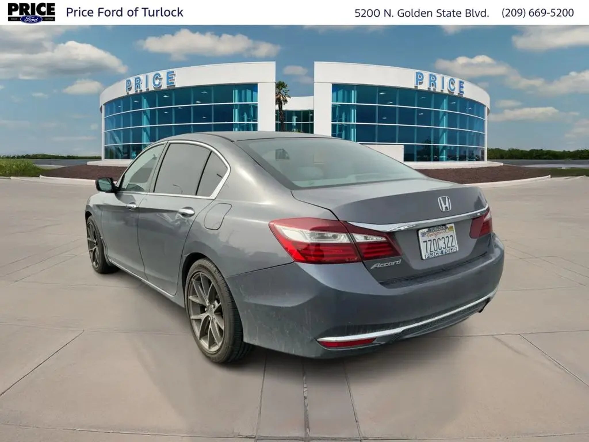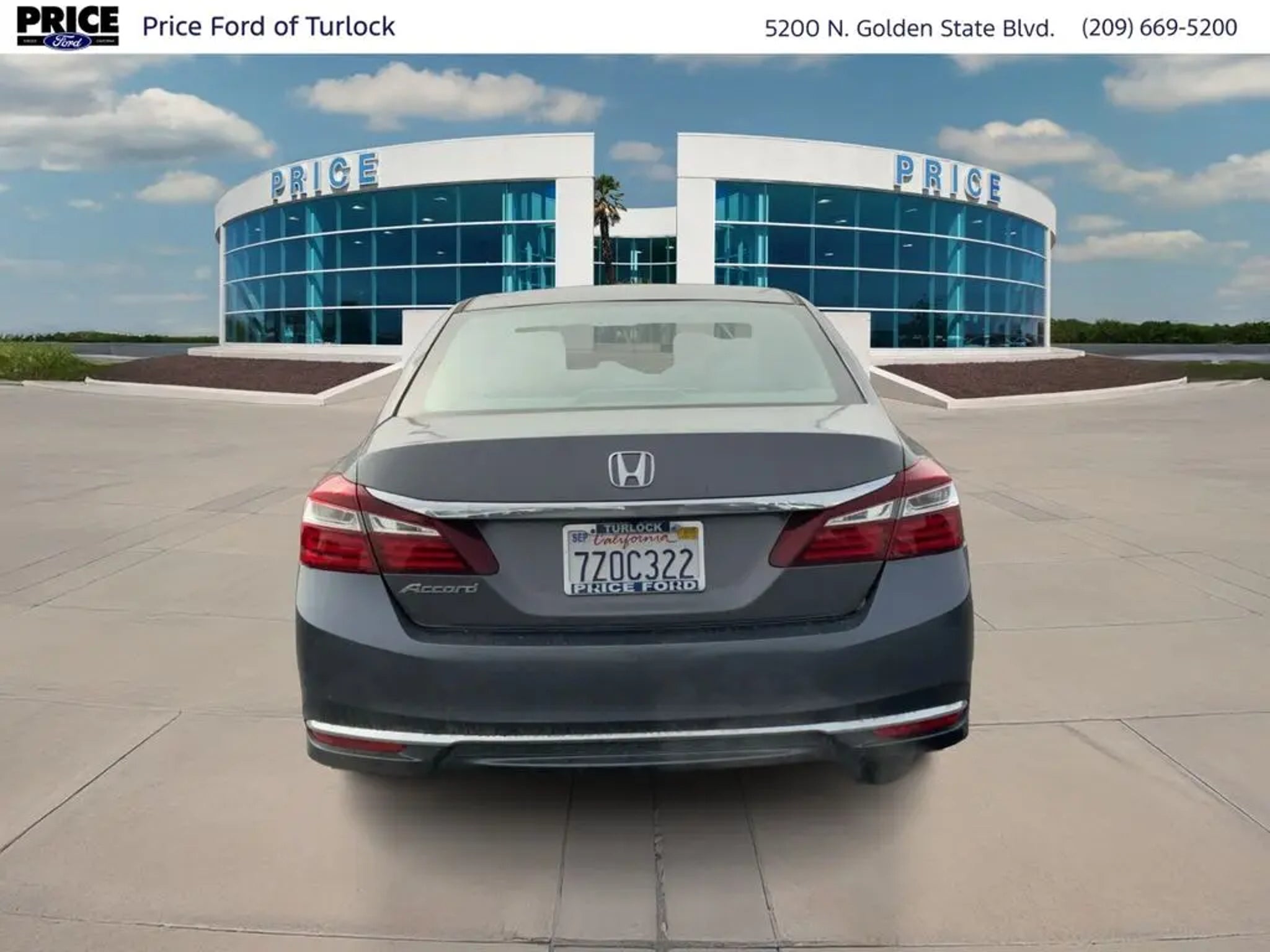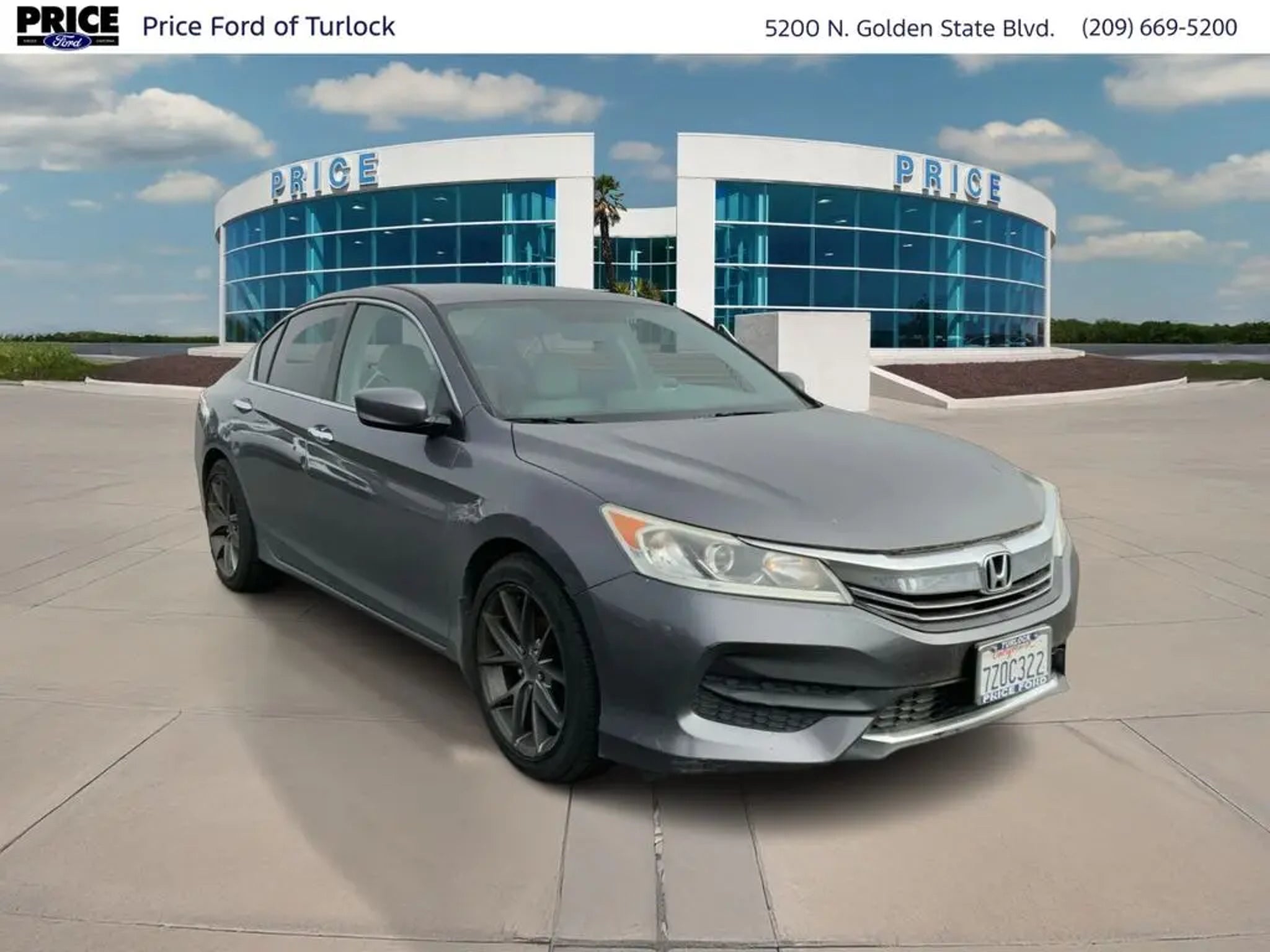 Equipment This 2017 Honda Accord offers Automatic Climate Control for personalized comfort. The vehicle features a hands-free Bluetooth phone system. Protect this 2017 Honda Accord from unwanted accidents with a cutting edge backup camera system. This unit is front wheel drive. Set the temperature exactly where you are most comfortable in this unit. The fan speed and temperature will automatically adjust to maintain your preferred zone climate. This mid-size car has a 4 Cyl, 2.4L high output engine. This mid-size car emanates grace with its stylish gray exterior. This 2017 Honda Accord features cruise control for long trips. Enjoy the tried and true gasoline engine in the vehicle. The Electronic Stability Control will keep you on your intended path. The high efficiency automatic transmission shifts smoothly and allows you to relax while driving. Just the right size to accommodate all your needs. It has room for passengers and plenty of trunk space. Additional Information Price Ford of Turlock is the newest Ford Dealer located in the heart of the Central Valley and we promise to work the hardest to be your dealer. Once you compare our prices online, you will see we are priced competitively in the market. But more importantly, our pre-owned vehicles have all been serviced by factory trained technicians and passed an extensive pre-owned checklist. All of our pre-owned vehicles come with a complimentary 7-day Money Back Guarantee and all vehicles newer than 10 years old and under 100,000 miles come with a 3mo/3,000 mile Limited Used Vehicle Warranty. If you have any questions about the vehicle, its pricing, finance options, or service contract eligibility, please email us a