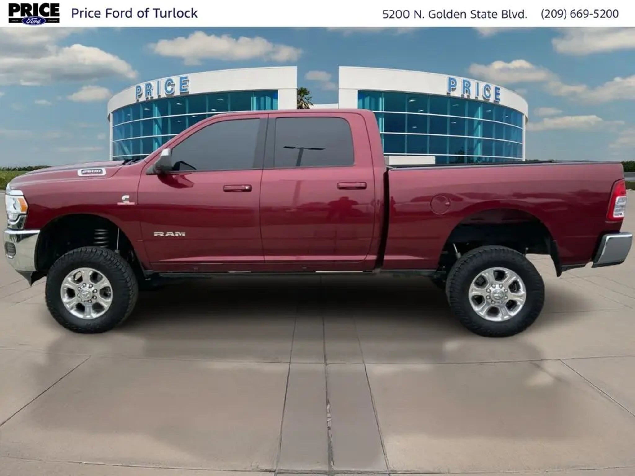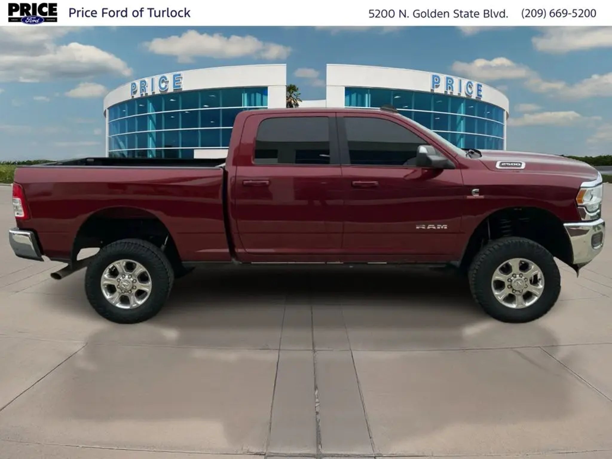 Equipment See what's behind you with the back up camera on the vehicle. The Ram 2500 features a hands-free Bluetooth phone system. This 3/4 ton pickup excites both driver and bystanders with a polished red exterior with racy lines. Greater towing safety becomes standard with the installed trailer brake. Set the temperature exactly where you are most comfortable in the vehicle. The fan speed and temperature will automatically adjust to maintain your preferred zone climate. With the keyless entry system on the vehicle you can pop the trunk without dropping your bags from the store. It has a 6 Cyl, 6.7L high output engine. When you encounter slick or muddy roads, you can engage the four wheel drive on the Ram 2500 and drive with confidence. The high efficiency automatic transmission shifts smoothly and allows you to relax while driving. Electronic Stability Control is one of many advanced safety features on this Ram 2500. Packages Quick Order Package 2HZ Big Horn. Chrome Flat Wheel-To-wheel Side Steps. Tow Hooks. Delmonico Red Pearlcoat. **Equipment listed is based on original vehicle build and subject to change. Please confirm the accuracy of the included equipment by calling the dealer prior to purchase.** Additional Information Price Ford of Turlock is the newest Ford Dealer located in the heart of the Central Valley and we promise to work the hardest to be your dealer. Once you compare our prices online, you will see we are priced competitively in the market. But more importantly, our pre-owned vehicles have all been serviced by factory trained technicians and passed an extensive pre-owned checklist. All of our pre-owned vehicles come with a complimentary 7-day Money Back Guarantee and all vehicles newer than 10 years old and under 100,000 miles come with a 3mo/3,000 mile Limited Used Vehicle Warranty. If you have any questions about the vehicle, its pricing, finance options, or service contract eligibility, please email us a
