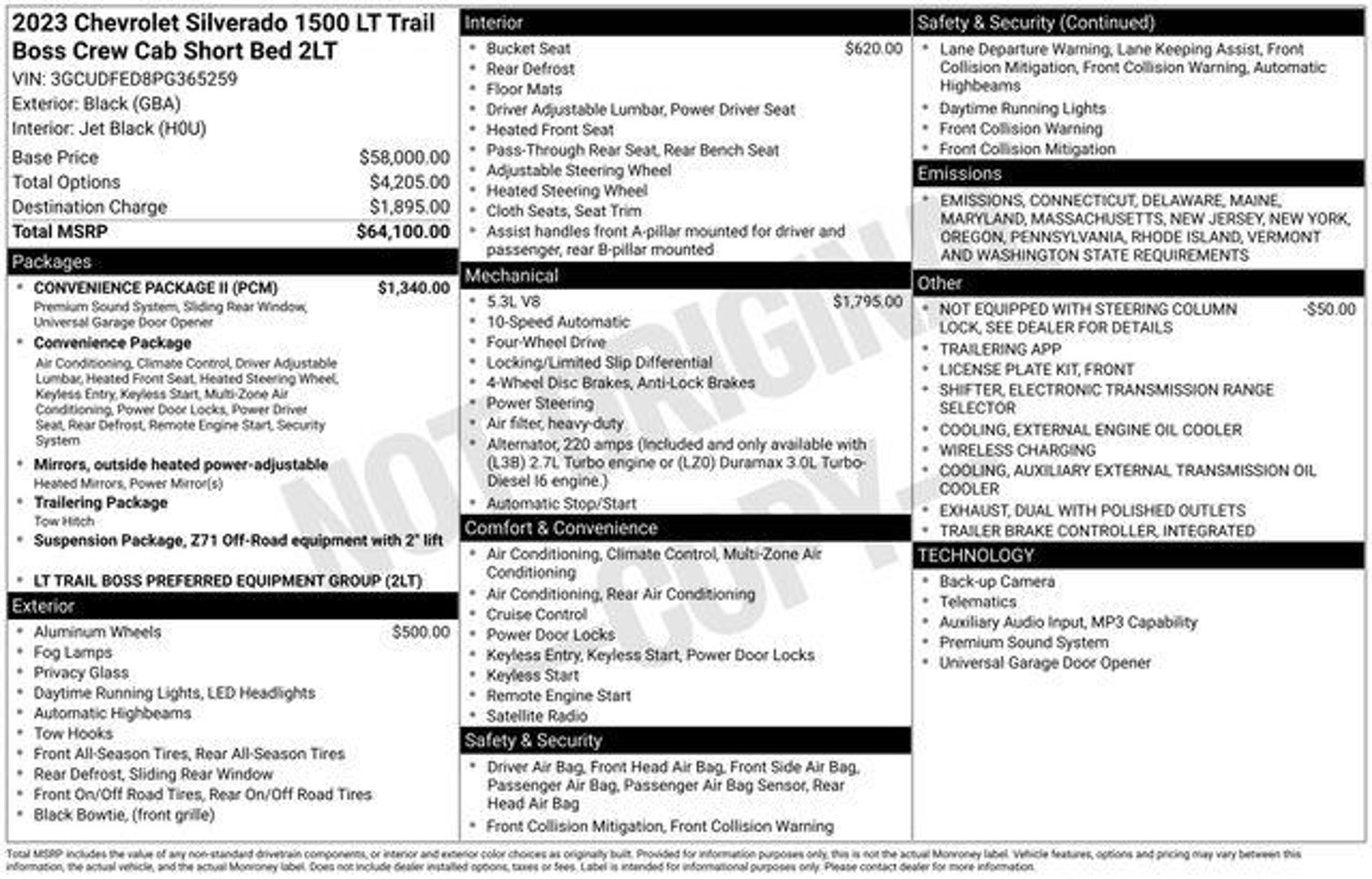 2023 Chevrolet Silverado 1500 LT Trail Boss Clean CARFAX. 4WD Black 10-Speed Automatic EcoTec3 5.3L V8 CONVENIENCE PACKAGE II FRONT BUCKETS WITH CENTER CONSOLE 20 HIGH GLOSS WHEELS Certification Program Details: 6 MONTH / 7,500 MILE COMPREHENSIVE LIMITED WARRANTY 12 MONTH EASYCARE SELECT PLUS - WINDSHIELD REPAIR - ROAD HAZARD PROTECTION - COSMETIC WHEEL REPAIR - ROADSIDE ASSISTANCE -COMPLIMENTARY 1ST OIL CHANGE -$500 TRADE IN VALUE GUARANTEE -72 HOUR EXCHANGE POLICY ( MAXIMUM 300 MILES DRIVEN) -BEST VALUE GUARANTEE MOTOR TREND CERTIFIED DETAILS - --6 MONTH/7,500 MILE COMPREHENSIVE WARRANTY --PORTSMOUTH FORD ADVANTAGE 1 YEAR FREE -- WINDSHIELD REPAIR -- COSMETIC WHEEL REPAIR -- ROAD HAZARD PROTECTION -- ROADSIDE ASSISTANCE --KEY REPLACEMENT --PAINTLESS DENT REPAIR --COMPLIMENTARY 1st OIL CHANGE --72 HOUR EXCHANGE POLICY (MAX 300 MILES) OUR BEST PRICE PRACTICE TO ALL CUSTOMERS SINCE 1992!! We are the Original One True Price Dealer. NO DEALER FEES!!! NO PREP FEES!!! NO 3rd party Buying fees!!! Call us at 1-603-431-2822 or visit us on the web at www.portsmouthusedcarcenter.com.