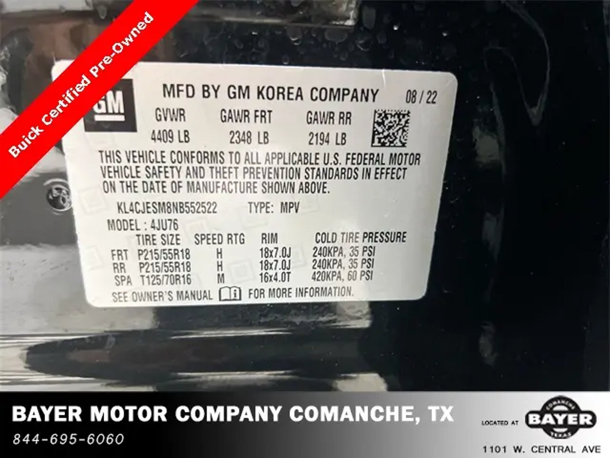 Certified. Ebony Twilight Metallic 2022 Buick Encore Preferred AWD 6-Speed Automatic Electronic with Overdrive 1.4L ECOTEC Turbo VVT DOHC 4-Cyl SIDI Call us directly at ! Delivery available upon request! Odometer is 35778 miles below market average! 23/30 City/Highway MPG Buick Certified Pre-Owned Details: * Limited Warranty: 12 Month/12,000 Mile (whichever comes first) from certified purchase date * 24 months/24,000 miles (whichever comes first) Certified Pre-Owned Scheduled Maintenance Plan and 3 days/150 miles (whichever comes first) Vehicle Exchange Program. 1 month of OnStar Safety & Security Plan, Navigation Services, Remote Access Plan, and 1 month or 3GB of 4G LTE data (whichever comes first). * Roadside Assistance * Vehicle History * Transferable Warranty * Warranty Deductible: $0 * Powertrain Limited Warranty: 72 Month/100,000 Mile (whichever comes first) from original in-service date * 172 Point Inspection WE PUT CUSTOMERS FIRST!