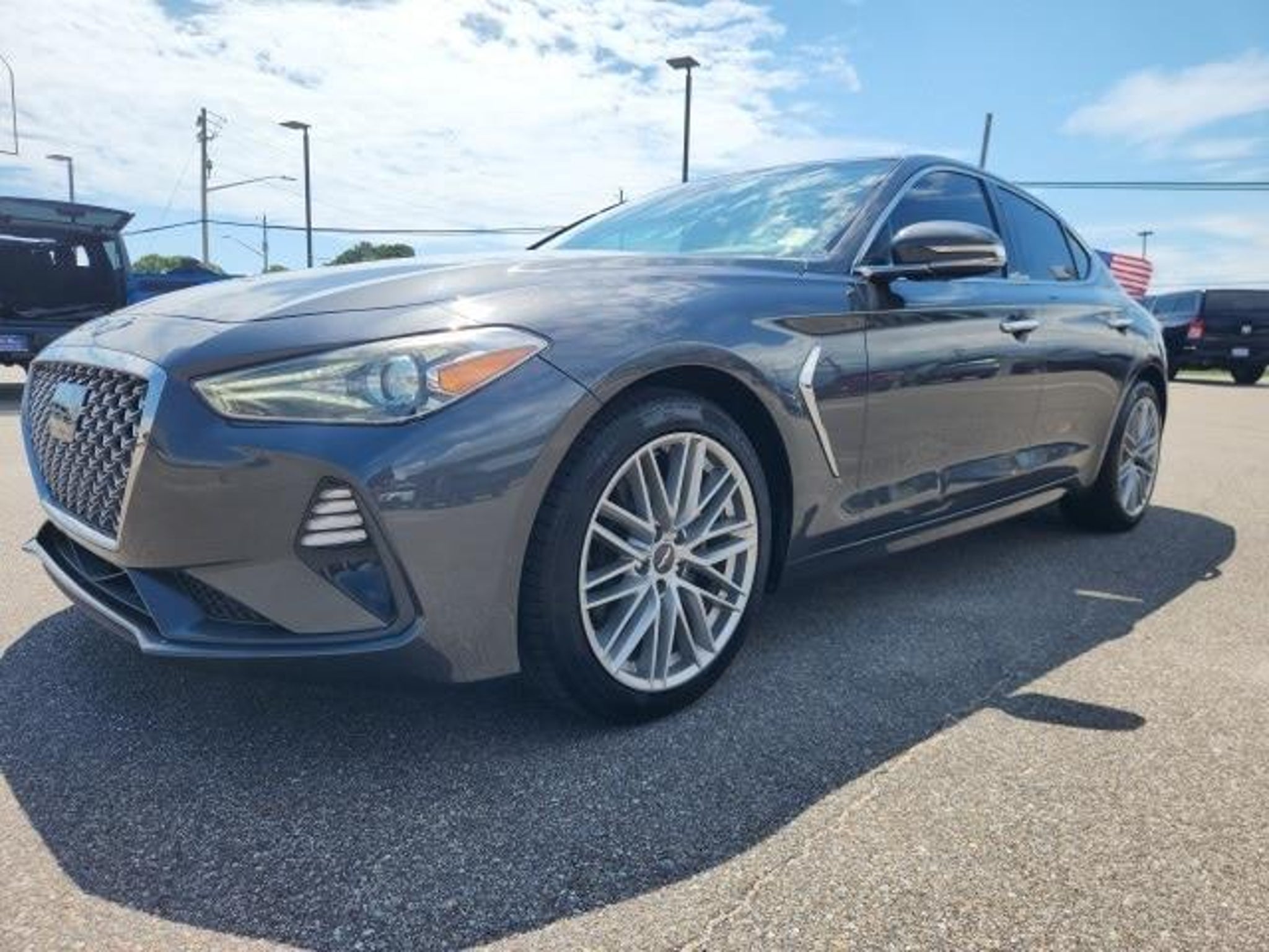 Recent Arrival! 2020 Genesis G70 2.0T Himalayan Gray 2.0T 2.0L Turbocharged 8-Speed Automatic RWD Clean CARFAX. G70 2.0T, 4D Sedan, 2.0L Turbocharged, 8-Speed Automatic, RWD, Himalayan Gray, Black/Gray w/Leatherette Seating Surfaces or Leather Seating Surfaces or Nappa Leather Seating Surfaces w/Luxury Quilting, 4-Wheel Disc Brakes, ABS brakes, Android Auto & Apple CarPlay, Anti-whiplash front head restraints, Auto High-beam Headlights, Bumpers: body-color, Delay-off headlights, Door & Console Aluminum Trim, Dual front impact airbags, Dual front side impact airbags, Elite Package, Emergency communication system: Genesis Connected Services, Exterior Parking Camera Rear, Forward/Reverse Parking Distance Warning, Front Passenger Seat Walk-In Device, Full LED Headlights w/Auto-Leveling, Fully automatic headlights, Genesis Logo Approach Lights, Heated Front Seats, Integrated Memory System (IMS), Leather Seating Surfaces, Low tire pressure warning, Occupant sensing airbag, Option Group 02, Option Group 02 w/Prestige/Sport Package, Panic alarm, Power driver seat, Power Folding Auto-Dimming Outside Mirrors, Power steering, Power Tilt & Slide Wide Sunroof, Power Tilt & Telescopic Steering Wheel, Power windows, Radio: AM/FM/SiriusXM/HD Radio Lexicon Audio Sys, Rear Bumper Applique, Remote keyless entry, Security system, Steering wheel mounted audio controls, Wheels: 18 x 8.0J Alloy w/Bright Finish. The # 1 deal at # 1 Beal