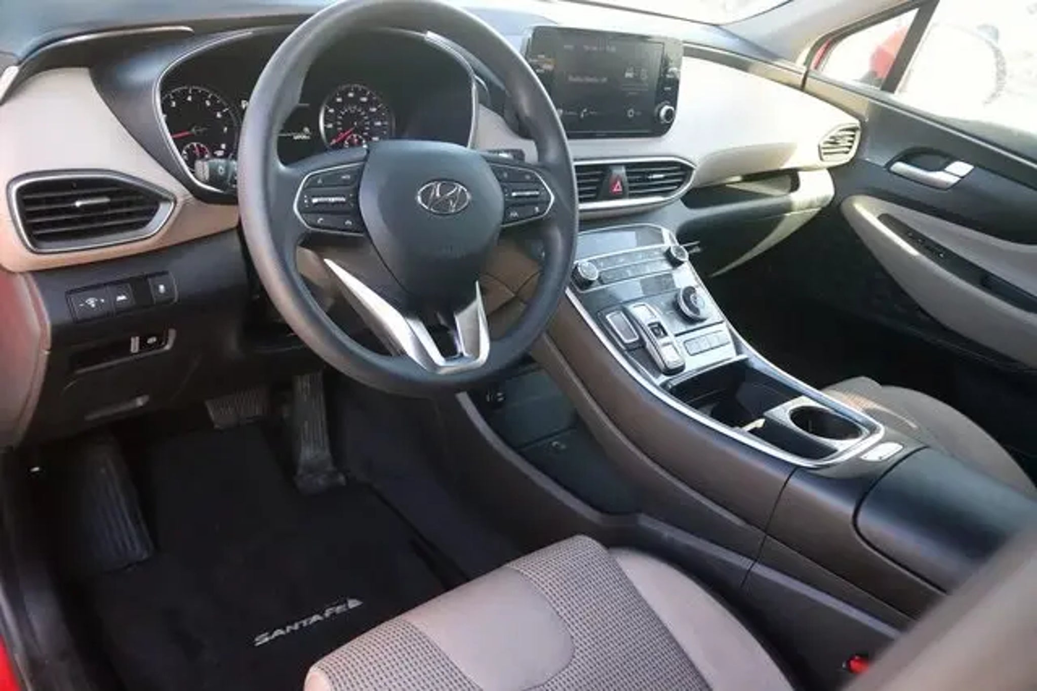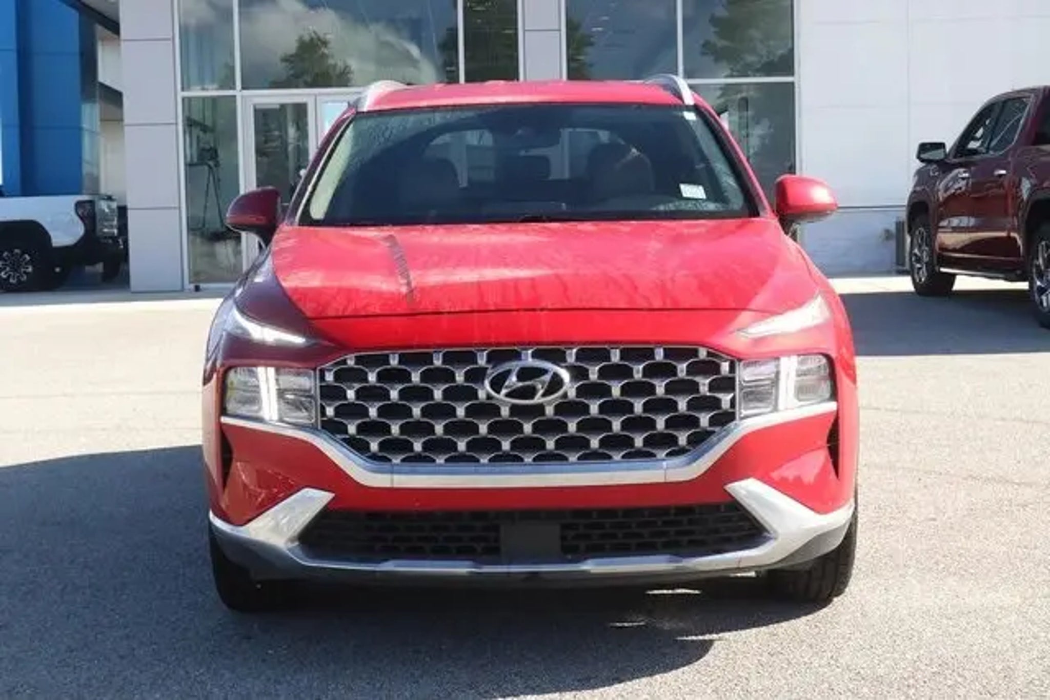 All Routine Maintenance Up To Date. 2022 Hyundai Santa Fe SEL Calypso Red 25/28 City/Highway MPG Equipped with Cargo Package (Cargo Net, Cargo Tray, and First Aid Kit), Option Group 01, 18 x 7.5J Alloy Wheels, 4-Wheel Disc Brakes, 6 Speakers, ABS brakes, Air Conditioning, Alloy wheels, AM/FM radio: SiriusXM, Apple CarPlay & Android Auto, Auto High-beam Headlights, Axle Ratio: 3.798, Brake assist, Bumper Applique, Bumpers: body-color, Cargo Cover/Screen, Carpeted Floor Mats, Delay-off headlights, Driver door bin, Driver vanity mirror, Dual front impact airbags, Dual front side impact airbags, Electronic Stability Control, Emergency communication system, Exterior Parking Camera Rear, Four wheel independent suspension, Front anti-roll bar, Front Bucket Seats, Front Center Armrest, Front reading lights, Fully automatic headlights, Heated door mirrors, Heated Front Bucket Seats, Heated front seats, Illuminated entry, Low tire pressure warning, Mudguards, Occupant sensing airbag, Outside temperature display, Overhead airbag, Overhead console, Panic alarm, Passenger door bin, Passenger vanity mirror, Power door mirrors, Power driver seat, Power steering, Power windows, Radio: AM/FM Display Audio, Rear anti-roll bar, Rear seat center armrest, Rear window defroster, Rear window wiper, Remote keyless entry, Security system, Speed control, Speed-sensing steering, Split folding rear seat, Spoiler, Steering wheel mounted audio controls, Tachometer, Telescoping steering wheel, Tilt steering wheel, Traction control, Trip computer, Variably intermittent wipers, Wheel Locks, and YES Essentials Stain-Resistant Cloth Seat Trim. Family owned and operated since 1938. BUY ONLINE-TEXT-EMAIL-CHAT-PHONE. A better way to buy your next vehicle. Where a handshake still means something. Serving Roanoke Rapids, Weldon, Halifax, Scotland Neck, Emporia, South Hill, Franklin, Henderson, Louisburg, Murfreesboro, Littleton, Lake Gaston. We sale nationwide!