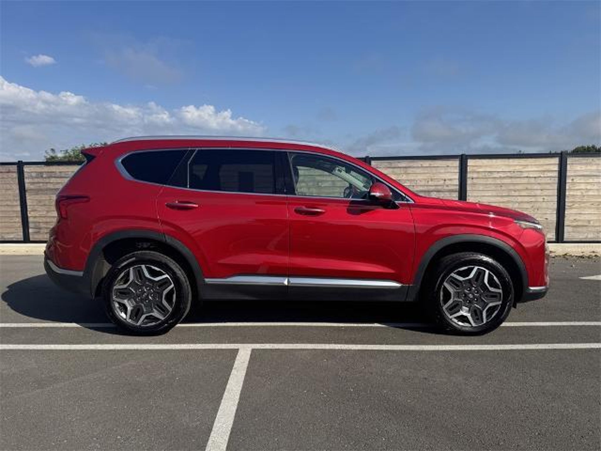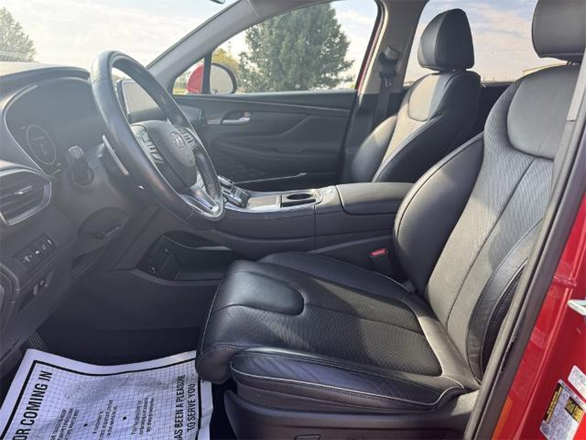 REAR BACKUP CAMERA, BLUETOOTH, HANDS-FREE, AUTOMATIC HEADLIGHTS, HEATED/COOLED SEATS, KEYLESS ENTRY, PUSH BUTTON START, NAVIGATION/GPS, BLIND SPOT MONITORING, APPLE CARPLAY, ANDROID AUTO, TOUCH SCREEN CONTROLS, ADAPTIVE CRUISE CONTROL, **HEATED LEATHER**, **KEYLESS IGNITION, PUSH BUTTON START**, **REAR BACKUP SENSORS**, **LEATHER**, **REMOTE START**, **SIRIUS/XM SATELLITE RADIO**, **USB**, ACCIDENT FREE CARFAX, CARFAX ONE OWNER, FULL SAFETY INSPECTION CHECK, NON-SMOKER, POWER SUNROOF/MOONROOF, AWD, Black w/Leather Seat Trim. Option Group 01, AWD, Black w/Leather Seat Trim, 12 Speakers, 4-Wheel Disc Brakes, ABS brakes, Air Conditioning, Alloy wheels, AM/FM radio: SiriusXM, Apple CarPlay & Android Auto, Auto High-beam Headlights, Auto-dimming Rear-View mirror, Automatic temperature control, Axle Ratio: 3.316, Brake assist, Bumpers: body-color, Carpeted Floor Mats, Delay-off headlights, Driver door bin, Driver vanity mirror, Dual front impact airbags, Dual front side impact airbags, Electronic Stability Control, Emergency communication system, Four wheel independent suspension, Front anti-roll bar, Front Bucket Seats, Front Center Armrest, Front dual zone A/C, Front reading lights, Fully automatic headlights, Garage door transmitter: HomeLink, harman/kardon Speakers, Heated & Ventilated Front Bucket Seats, Heated door mirrors, Heated front seats, Heated rear seats, Heated steering wheel, Illuminated entry, Leather Seat Trim, Leather steering wheel, Low tire pressure warning, Memory seat, Navigation System, Occupant sensing airbag, Outside temperature display, Overhead airbag, Overhead console, Panic alarm, Passenger door bin, Passenger vanity mirror, Power door mirrors, Power driver seat, Power Liftgate, Power moonroof, Power passenger seat, Power steering, Power windows, Radio: AM/FM Harman Kardon Display Audio, Rain sensing wipers, Rear anti-roll bar, Rear seat center armrest, Rear window defroster, Rear window wiper, Remote keyless entry, Security system, Speed control, Speed-sensing steering, Split folding rear seat, Spoiler, Steering wheel mounted audio controls, Tachometer, Telescoping steering wheel, Tilt steering wheel, Traction control, Trip computer, Turn signal indicator mirrors, Variably intermittent wipers, Ventilated front seats, and Wheels: 19 x 7.5J Alloy. Priced below KBB Fair Purchase Price! 2022 Hyundai Santa Fe Limited I4 AWD Shiftronic Calypso Red