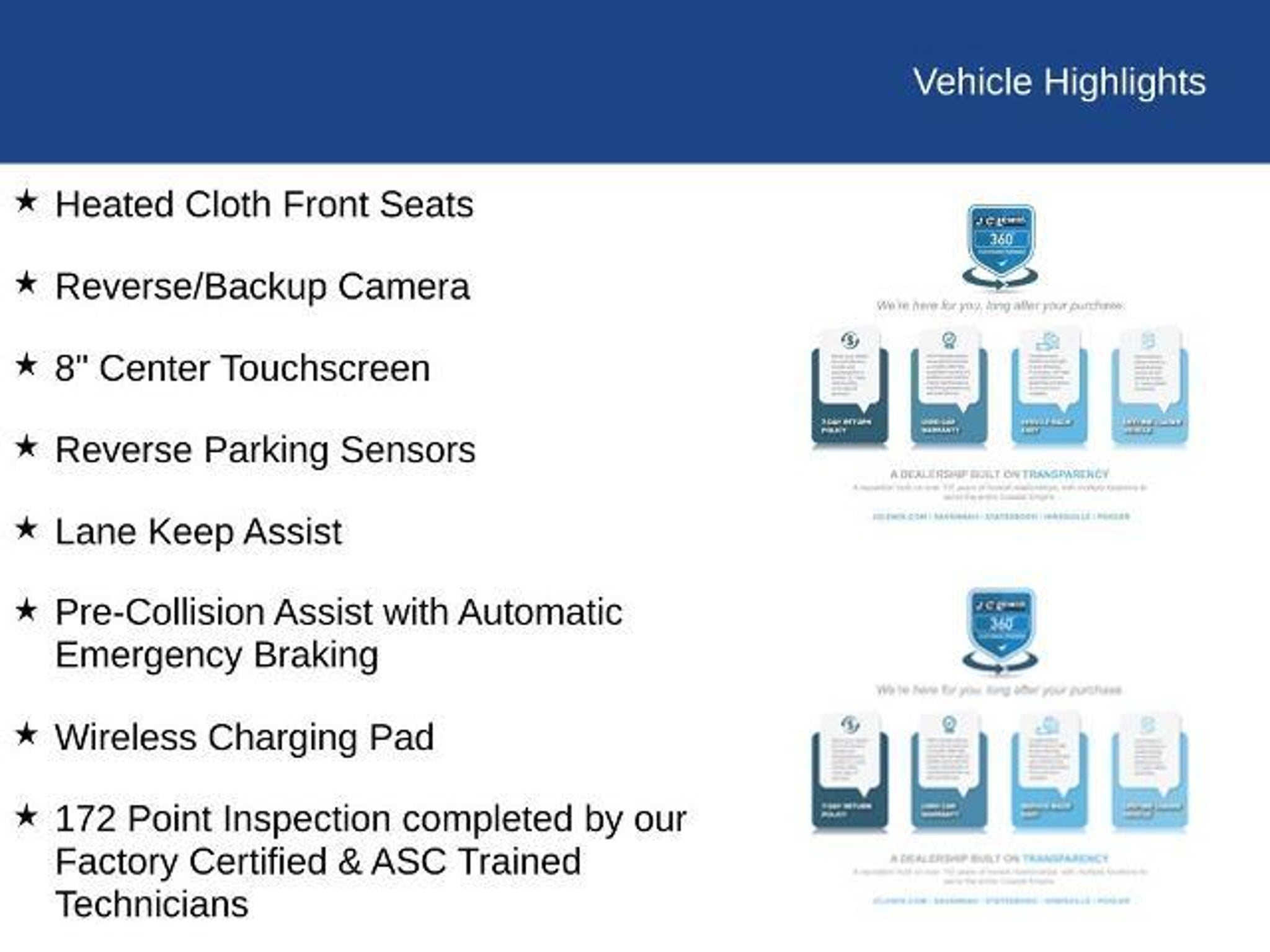 **FACTORY CERTIFIED** * Ford Blue Advantage: Blue Certified * 139 Point Inspection by Factory Certified Technicians * Roadside Assistance * Comprehensive Limited Warranty: 3 Month/4,000 Mile with Roadside Assistance Adventure-ready and city-friendly, this 2023 Ford Bronco Sport Big Bend (VIN: 3FMCR9B63PRE00651) with just 19,657 miles blends rugged capability with everyday comfort. Outfitted with the Convenience Package, it adds thoughtful touches like rear parking sensors, a wireless charging pad, and a SecuriCodeâ keyless entry keypad for added peace of mind. Inside, youâll find an 8-way power driverâs seat for personalized comfort, a universal garage door opener, and durable rubberized second-row seat backs built to handle gear, pets, or weekend adventures with ease. Outside, LED fog lamps enhance visibility while giving the Bronco Sport a sharp, confident look. Practical, well-equipped, and ready for the road, this Bronco Sport Big Bend delivers the versatility and convenience todayâs drivers want in a modern SUV. ***ONE PREVIOUS OWNER!!*** **LOCAL TRADE!!** Heated Unique Cloth Front Seats, 8-Way Power Driver Seat, Reverse/Backup Camera, 8 Center Touchscreen, Reverse Parking Sensors, Lane Keep Assist, Pre-Collision Assist with Automatic Emergency Braking, Wireless Charging Pad, Roof Rack Side Rails, 172 Point Inspection completed by our Factory Certified & ASC Trained Technicians, Recent Oil Change, Vehicle Detailed, SecuriCode Keyless Entrypad, LED Headlamps w/Auto High Beams & LED Fog Lamps, Rubberized Cargo Floor, Rubber Rear Seat Backs, Terrain Management System, Leather Steering Wheel w/Audio Controls, SYNC 3/Apple CarPlay/Android Auto, 4G LTE Wi-Fi Hotspot Credit, Automatic Temperature Control, Convenience Package, Equipment Group 200A, Front Driver & Passenger Seatback Zipper Pockets, Intelligent Access (Lock/Unlock) w/Push Button Start, Push Button Start, Power Windows, Rear Window Defroster, Remote Keyless Entry, Speed Control, SYNC 3 Communications & Entertainment System, Universal Garage Door Opener (UGDO). Savannah, GA â J.C. Lewis Ford Built Ford Tough. In Savannah and throughout the Lowcountry, we believe in doing things right â with integrity, value, and a handshake that means something. Thatâs why we include over 20 photos and a full walkaround video, so you can take a close look before ever stepping on the lot. At J.C. Lewis Ford in Savannah, we offer transparent deals and dependable vehicles, whether you're headed downtown or back to the farm. Weâre happ