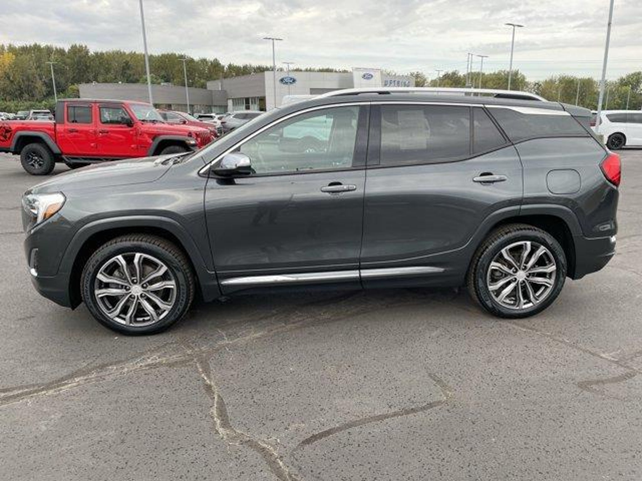 NEW PRICE! 116K MILES! 2 OWNER TRADE IN! MOONROOF! Graphite Gray Metallic 2018 GMC Terrain Denali FWD 9-Speed Automatic 2.0L Turbocharged Advanced Safety Package Apple CarPlay/Android Auto Automatic Parking Assist Birds Eye View Surround Vision Comfort Package Driver Alert Package II Emergency communication system: OnStar Guidance Exterior Parking Camera Rear Following Distance Indicator Forward Collision Alert Fully automatic headlights Heated Rear Outboard Seating Positions IntelliBeam Auto High Beam Headlamp Control Lane Keep Assist w/Lane Departure Warning Low Speed Forward Automatic Braking Perforated Leather-Appointed Seat Trim w/Denali Logo Power Liftgate Equipment Group 5SA Premium 7-Speaker Bose Sound System w/Amplifier Security system Skyscape Power Sunroof w/Power Sunscreen Speed control Ventilated Driver Seat Ventilated Front Passenger Seat Wheels: 19 x 7.5 Ultra-Bright Machined Aluminum Wireless Charging For Devices. Recent Arrival! 22/28 City/Highway MPG Call or stop in for your personal test drive today!
