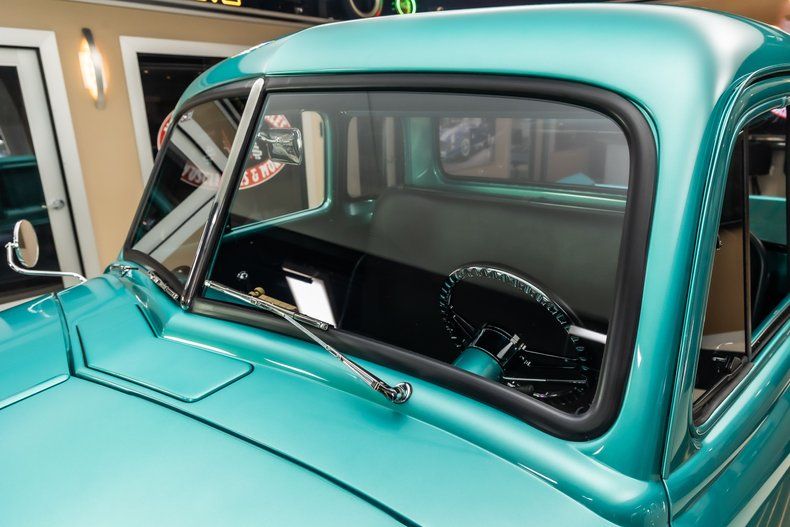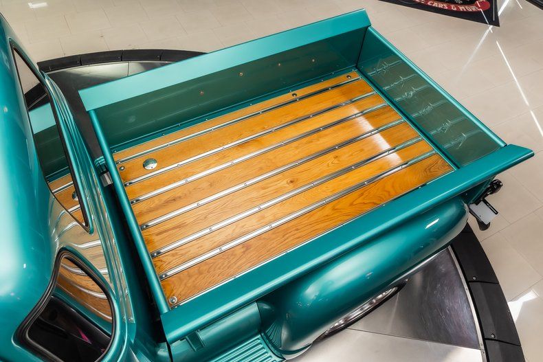 Body: - Turquoise Exterior Paint - Wood Lined Bed - American Racing Wheels - Chrome Front Bumper - Chrome Rear Bumper - Metal Front Fenders - Metal Running Boards - Metal Rear Fenders - 5 Window Style - Factory Located Battery