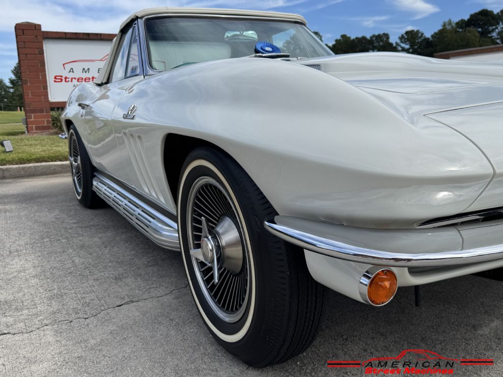 American Street Machines Inc is proud to offer this super rare early production 1966 L72 Corvette Convertible for sale. This NCRS Top Flight award winning car underwent a full frame off restoration and has only been driven 26 miles since. The color combination of this early production big block really sets it off with the correct code 972 Ermine White paint and correct code special order 450BK White with Blue interior. The matching numbers 427/450hp engine is what makes this a special and rare Corvette. Early production big block 425hp cars built in September and early October of 1965 were labeled at 450HP. These early production big block Corvettes are getting harder and harder to find not to mention the color combination and options this rare car has.