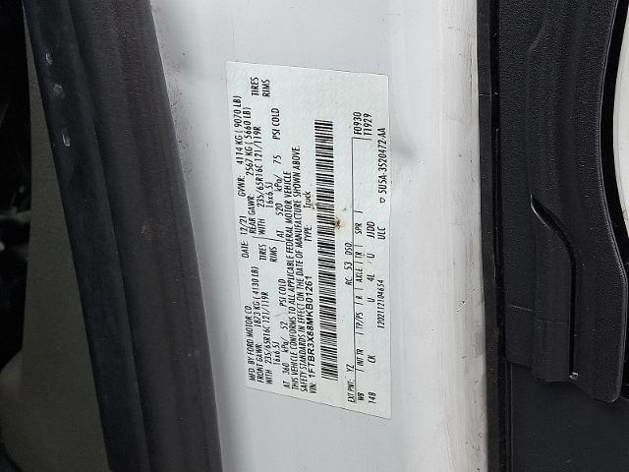VIN 1FTBR3X88MKB01261